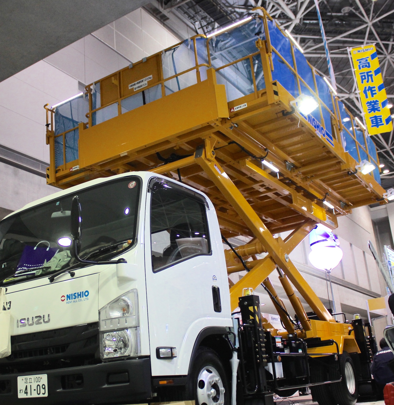 高く上がって作業員が乗れる部分は小さいものはバスケット、大型のものはデッキと呼ばれる。バスケットはふたりくらい、デッキは大きさや数によって10人以上で作業できるものもある。