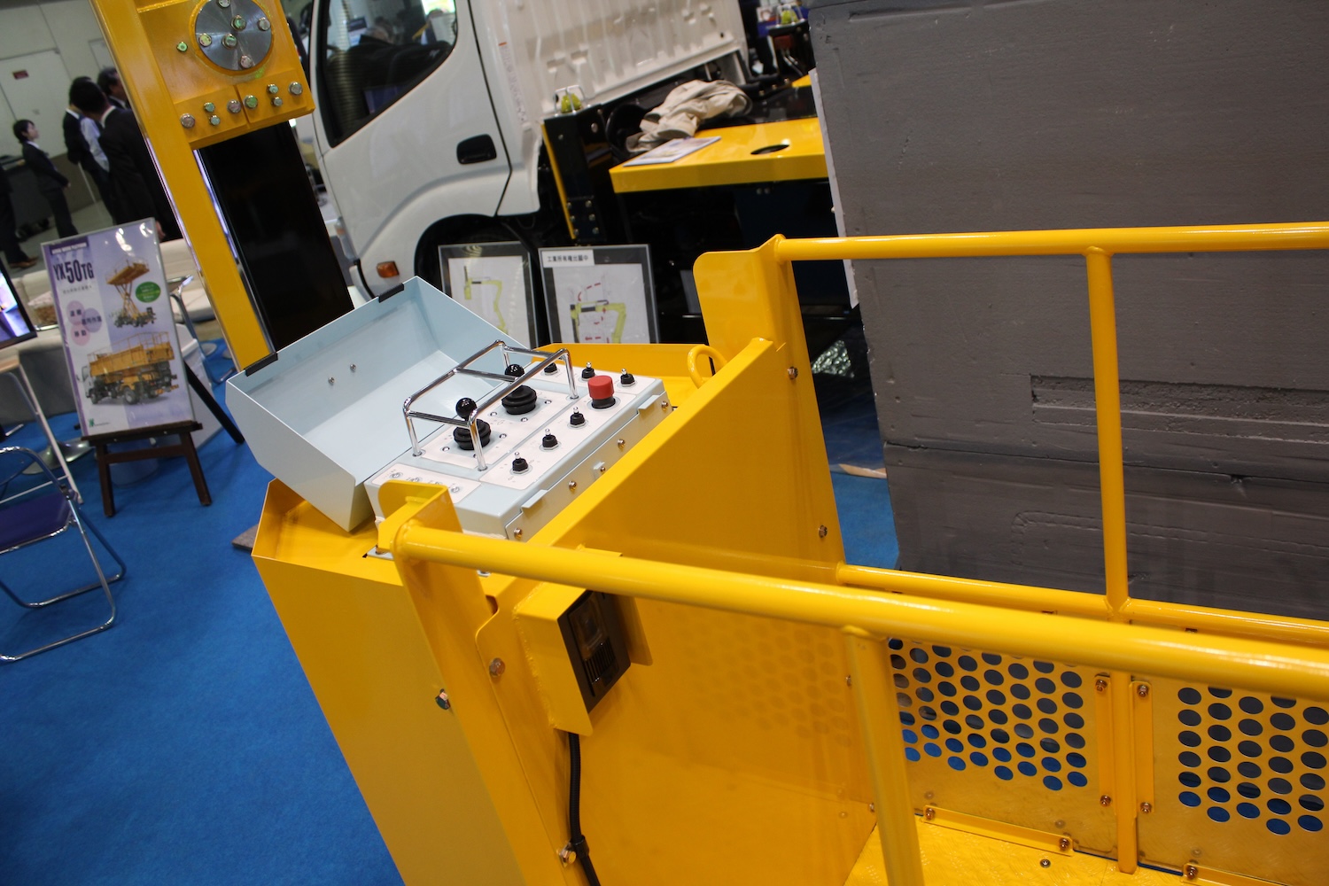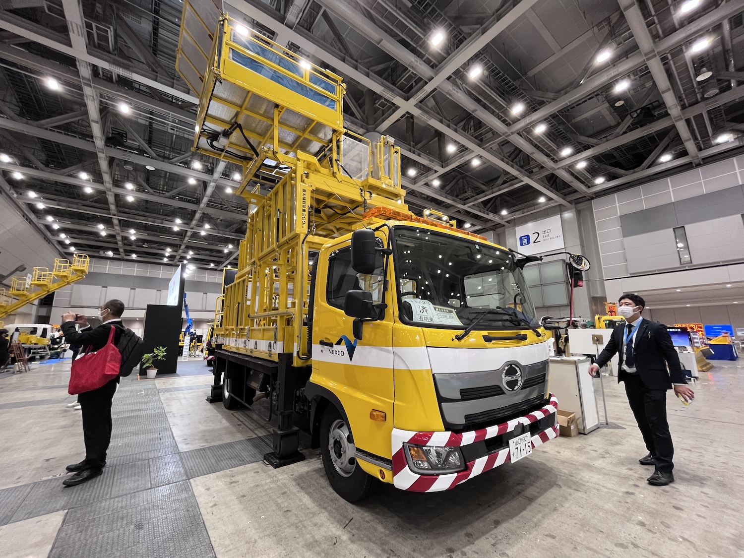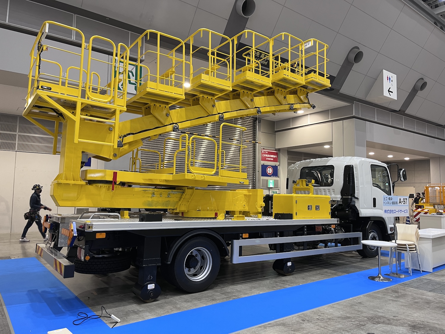 そこで最近ではアウトリガーの底部に車輪をつけて、これを油圧で駆動することにより低速で移動しながら点検作業が行えるように工夫したのだ。これによって作業効率は飛躍的に向上できることが容易に想像できる。そうかと思えばデッキをいくつも備えて異なる高さの内壁部分を同時に点検や補修作業できる高所作業車も用意されている。