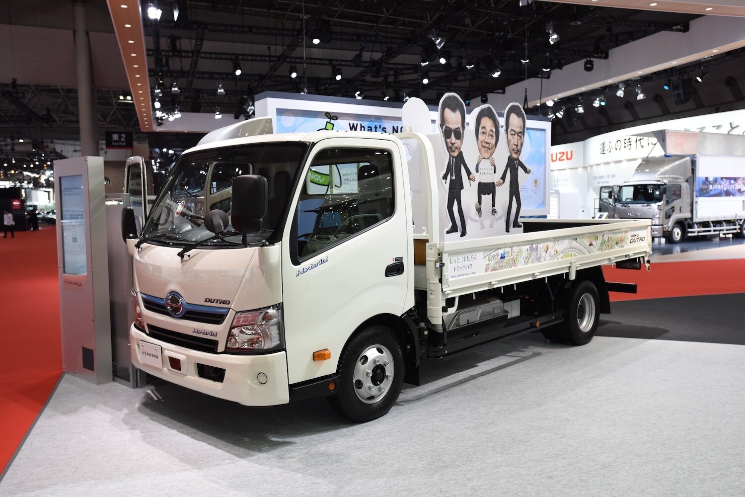 日野の小型トラック、デュトロはハイブリッドをいち早く設定したことでも話題になった小型車だ。トヨタグループということでハイブリッド技術(といっても実は最初にハイブリッドを実現したのは日野自動車だが)には優位性を感じさせる。