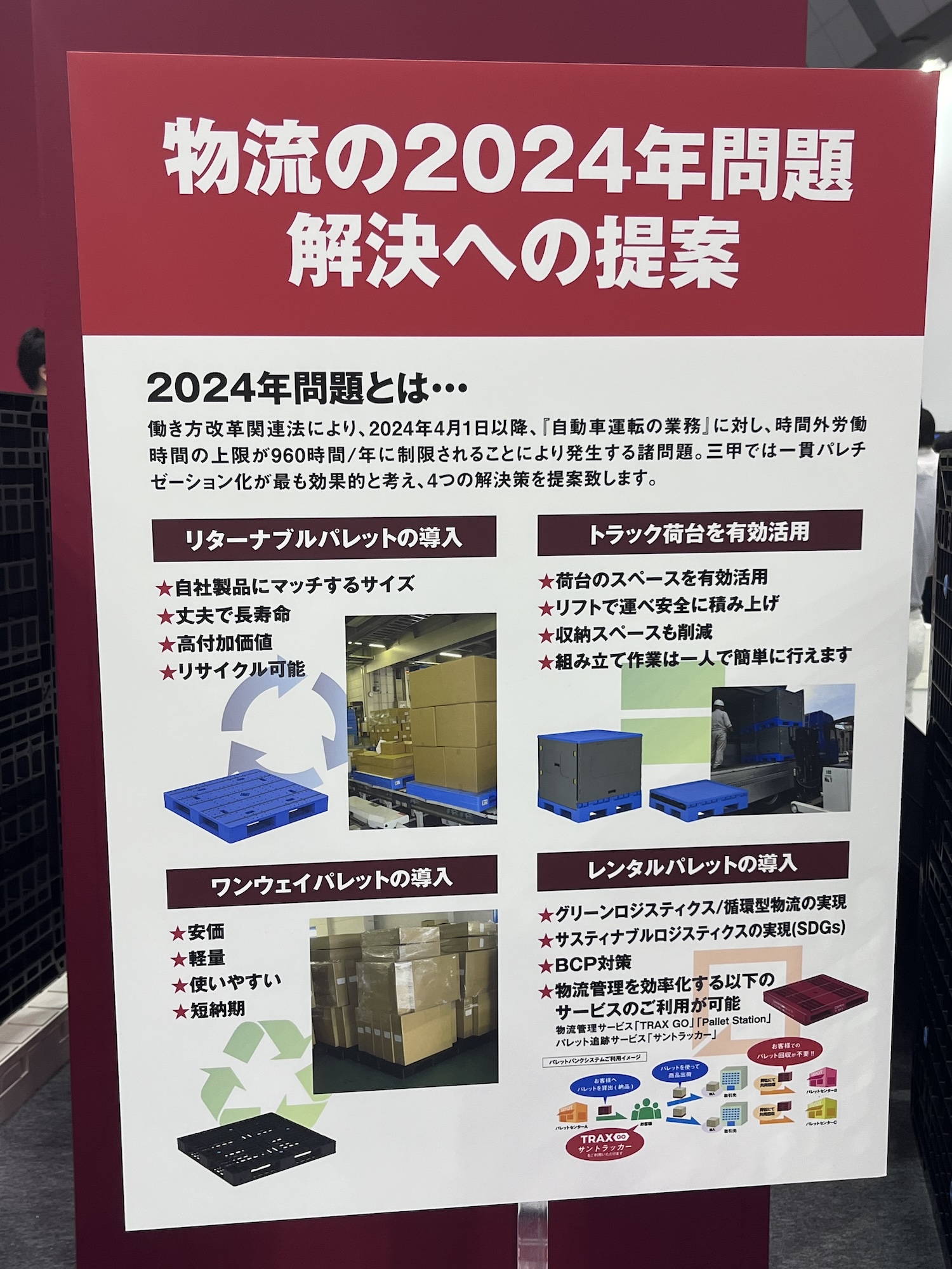 けれども、わずかなパレットの大きさ違いで行き先によってはパレットからの積み替えをしているのも現実問題として物流の無駄な部分になっている。このあたりの意識を変えていく必要がありそうだ。