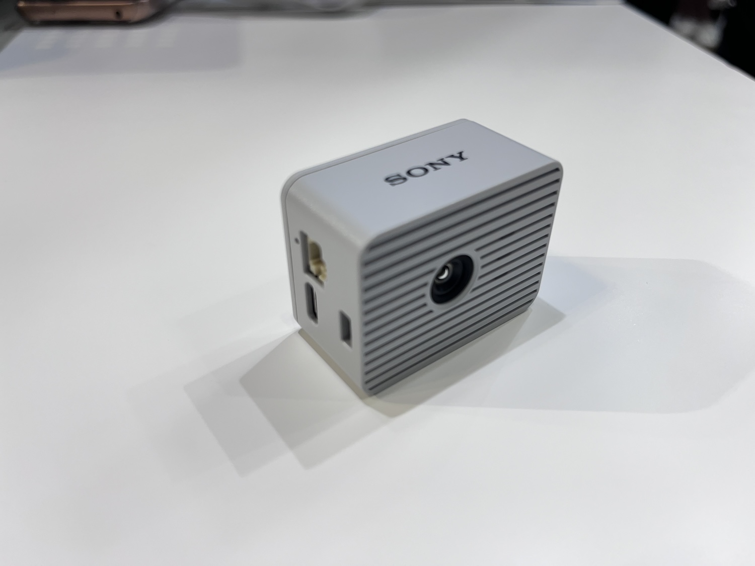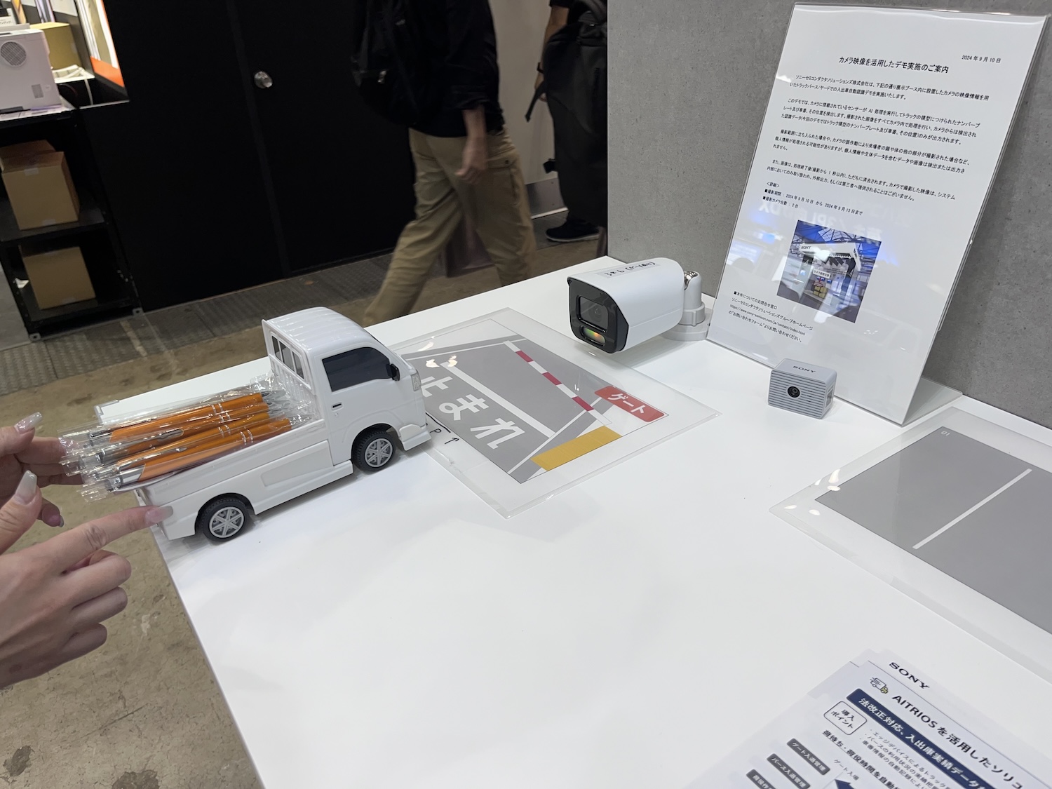 しかし物流業界にSONYの名は聞いたことがなかった。ブースを訪ねてみると、そこにはアクションカムのような超小型のカメラが置かれていた。これはアクションカム? 説明員に尋ねると意外な答えが返ってきた。