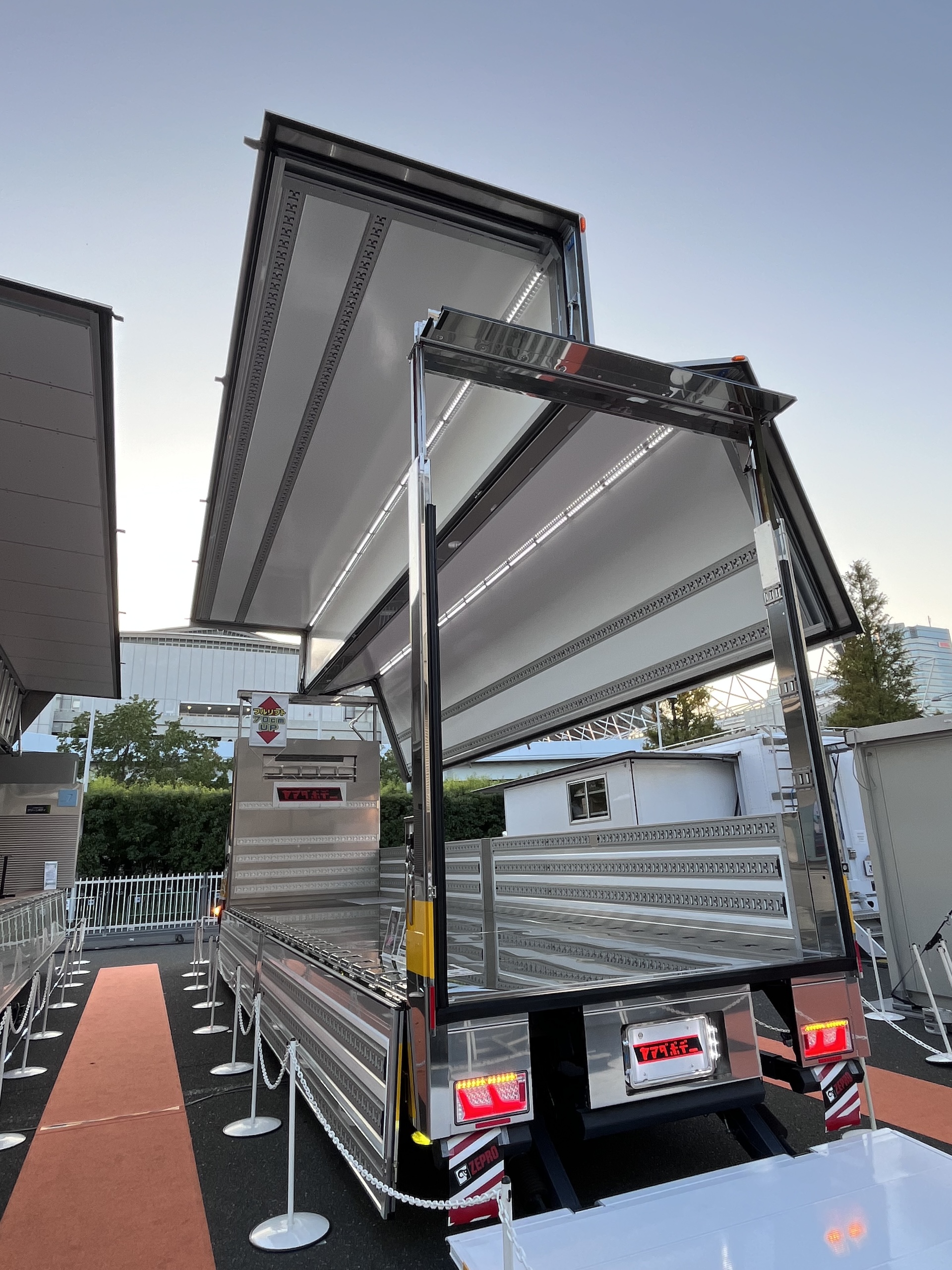 荷台部分でも工夫がされている。ポイントは、アルミ合金パネルだ。これは新幹線がそうであったように、素材を鋼板から変更することで、大幅な軽量化が可能になるのだ。くわえて美観や耐久性も向上する。デッキには、木材を使うことも有効だ。衝撃吸収性があるので、揺れや振動に対して積み荷のダメージを抑える効果が期待できる。