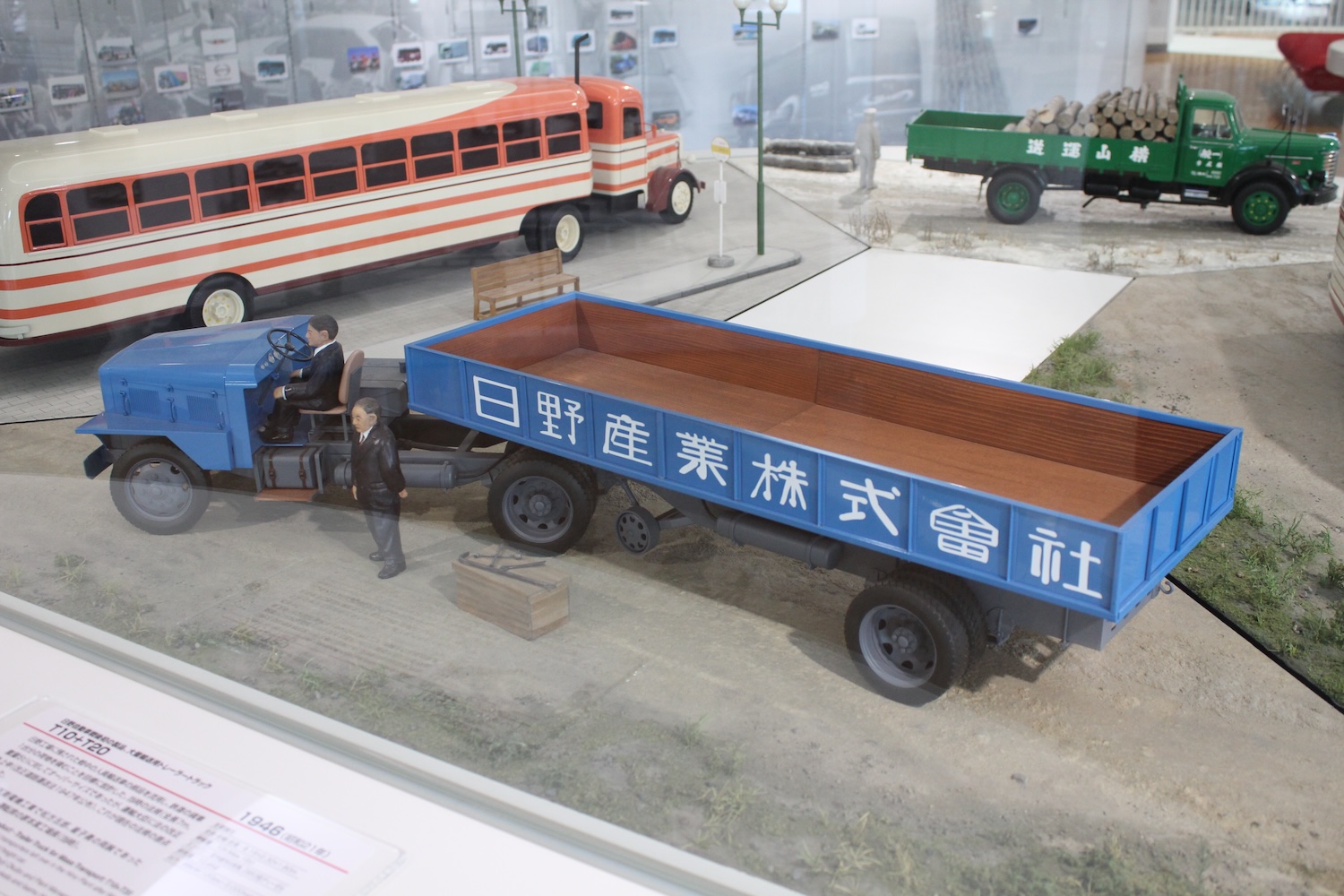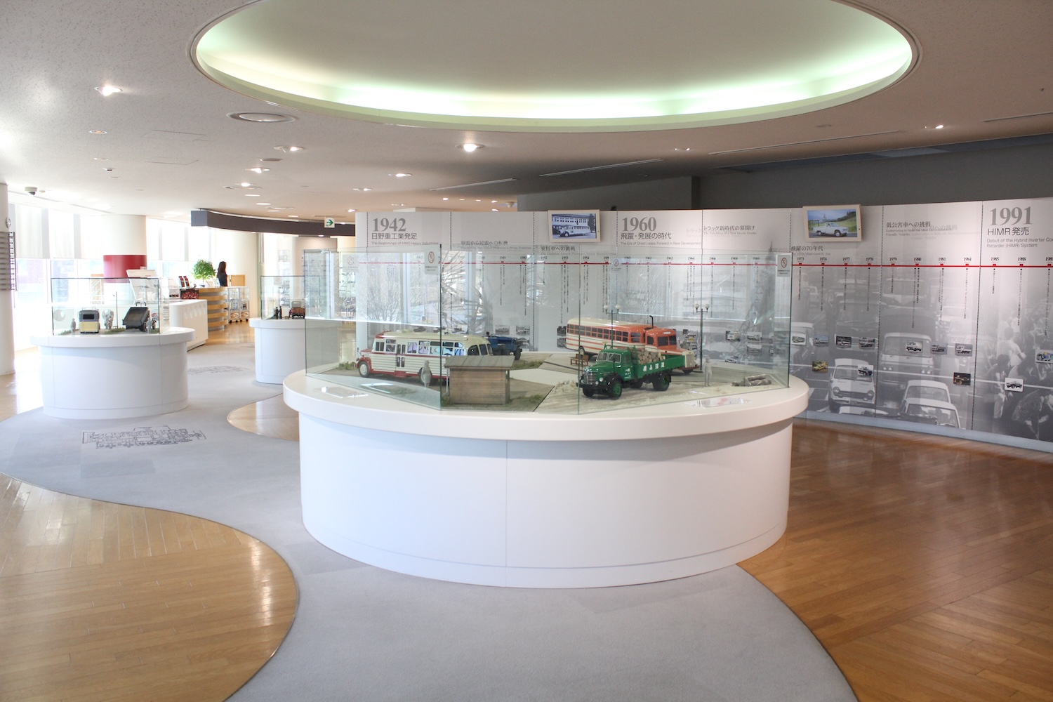 その後ろには世界のクルマにまつわる歴史や日野自動車に関する歴史が年表になっており、いかに日野自動車が長い歴史を刻んできたかが感じられる。