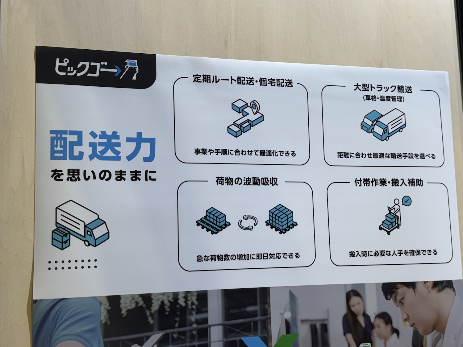 このエコ配、チャーター配送・宅配のピックゴーと一緒に出展していた。ピックゴーは日経系のTV番組でも取り上げられたことがあるチャーター便のマッチングサービスで、アプリを使って個人事業主のドライバーに配送の依頼が届き、荷物を受け取って届ければ仕事が完了するという、ドライバーにとっても稼ぎやすいシステムだ。