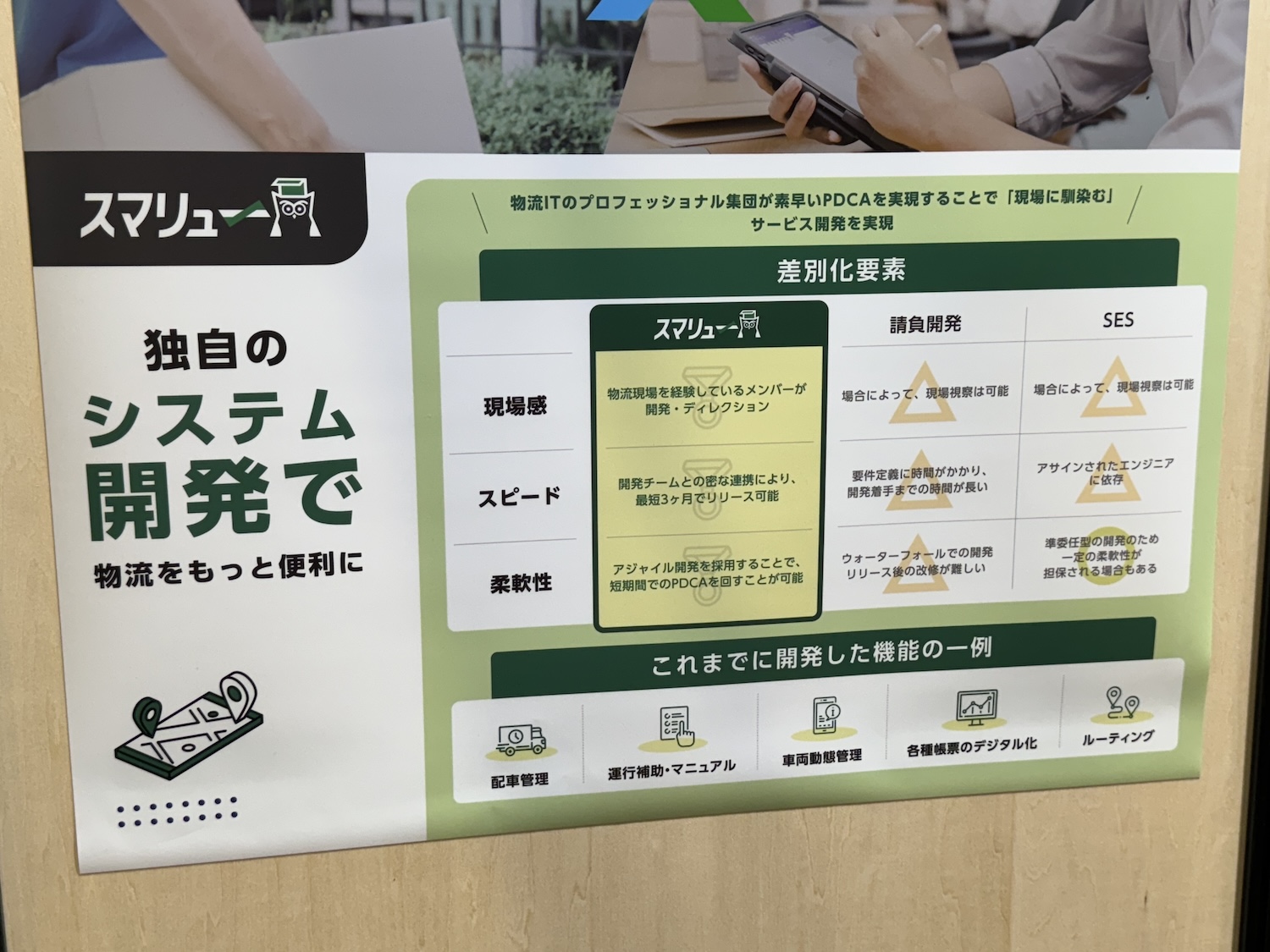 ピックゴーを運営するCBクラウドという企業は物流DXを実現するシステム開発のスマリューという商品も展開しており、エコ配もこのスマリューを利用しているため、共同ブースでの出展となったそうだ。