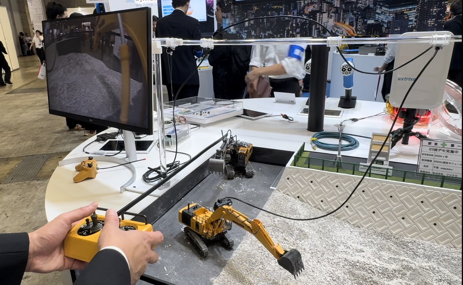 次にミリ波通信モジュールを利用した遠隔操作を見せてもらうと、まったく遅延を感じさせないほど違和感ない動作を実現していた。これなら遠隔地からの無人重機の遠隔操作も、ほとんど違和感なく操作できている。遅延はゼロではないらしいが、ほとんど感じないのだ。