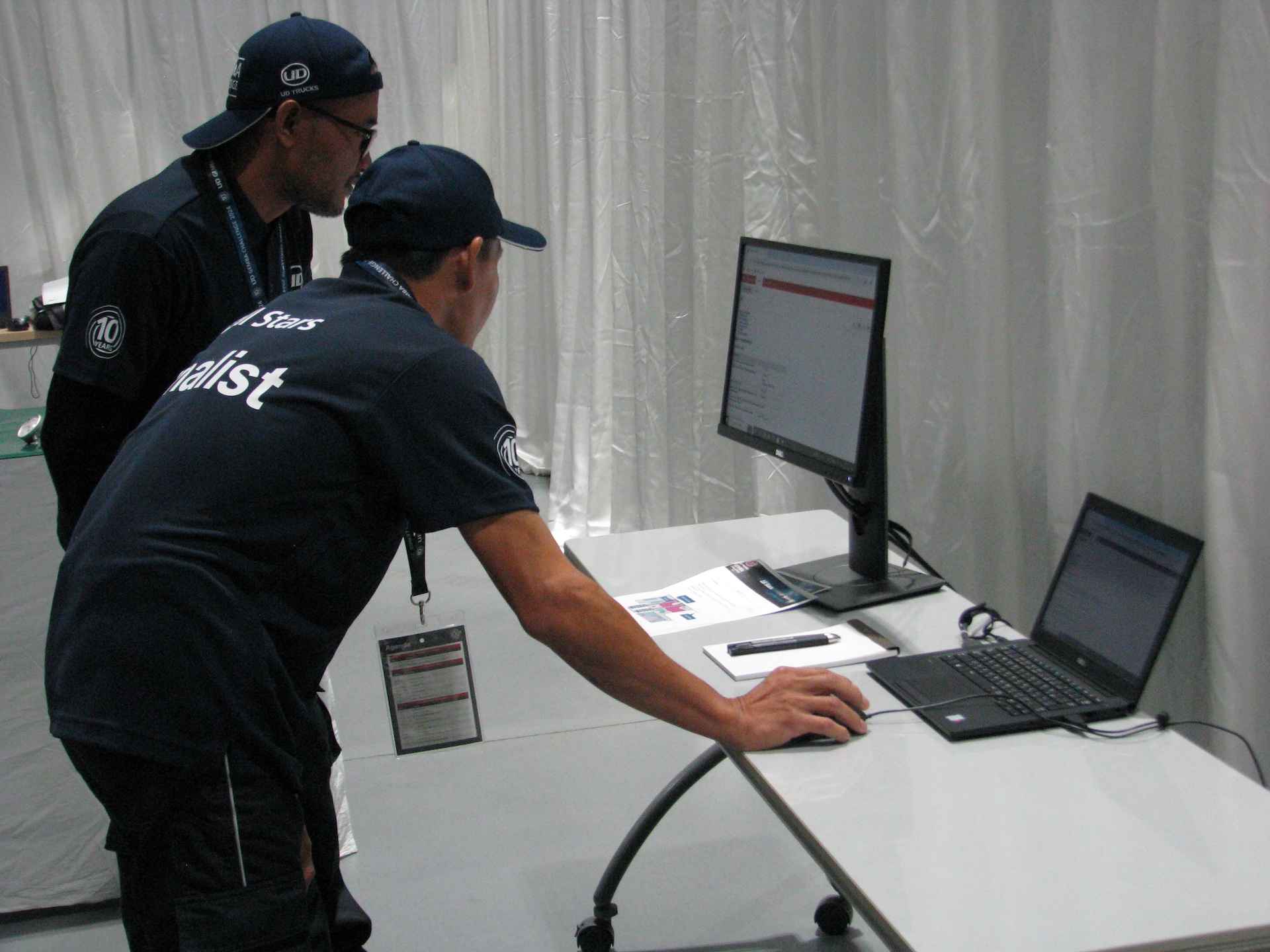 チームはメカニック/部品スタッフ/フロントなどで構成され、審査員との協議はチームリーダーが行なうように定められている。ひとり1人の技量だけではなく、メンバーがそれぞれの役割を果たすことでチームの総合力が試されるというわけだ。審査はUDトラックス本社のメカニックがあたり、