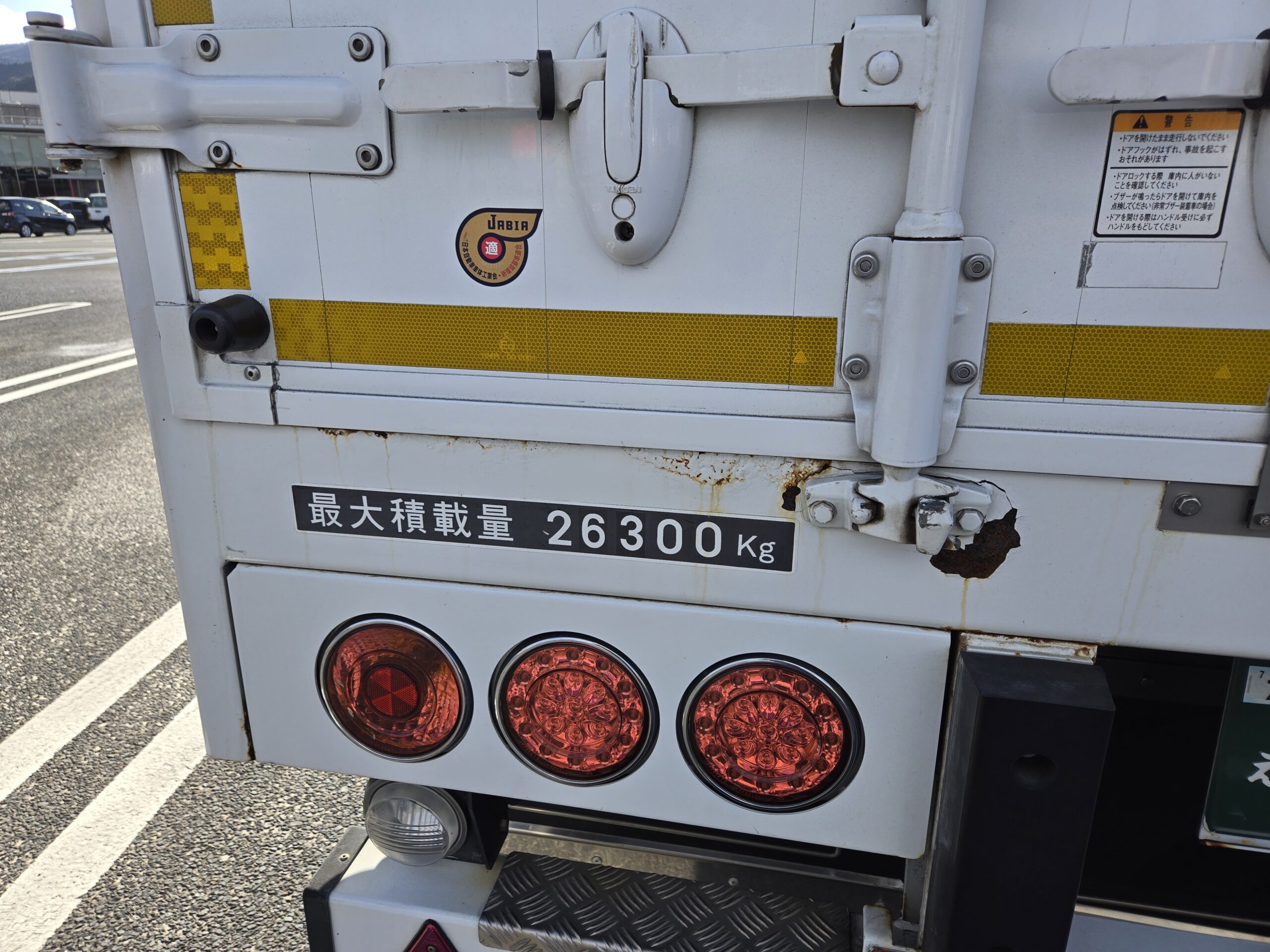 同じような大きさのトラックでも後部のステッカーで最大積載量を確認すると、意外と大きな差があったりするもの面白いところだ。