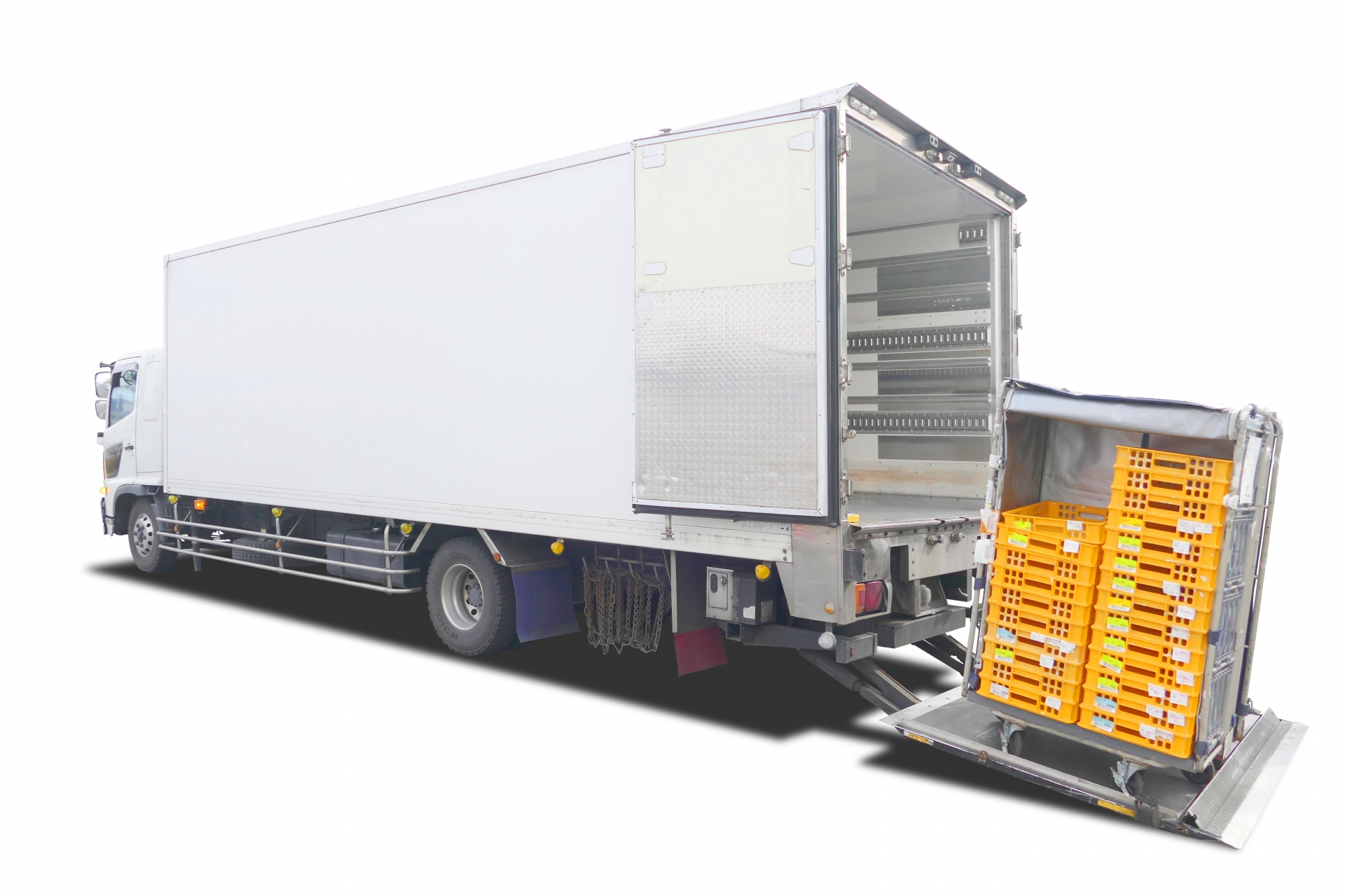 通称4トントラックとも呼ばれている中型トラックはどうだろう。4トントラックというとその名前から4トンまで積載できると考えがちだが、必ずしも4トン積めるわけではない。これは、中型トラックがこれまで車輌総重量8トン未満になるよう製作されてきたなかで、クレーンやテールゲートなどの架装によって、車輌重量が重くなってしまったことが理由だ。現在は道路交通法の改正により、中型自動車の車輌総重量は11トン未満までとなっているため、4トン以上の荷物を積めるトラックもある。