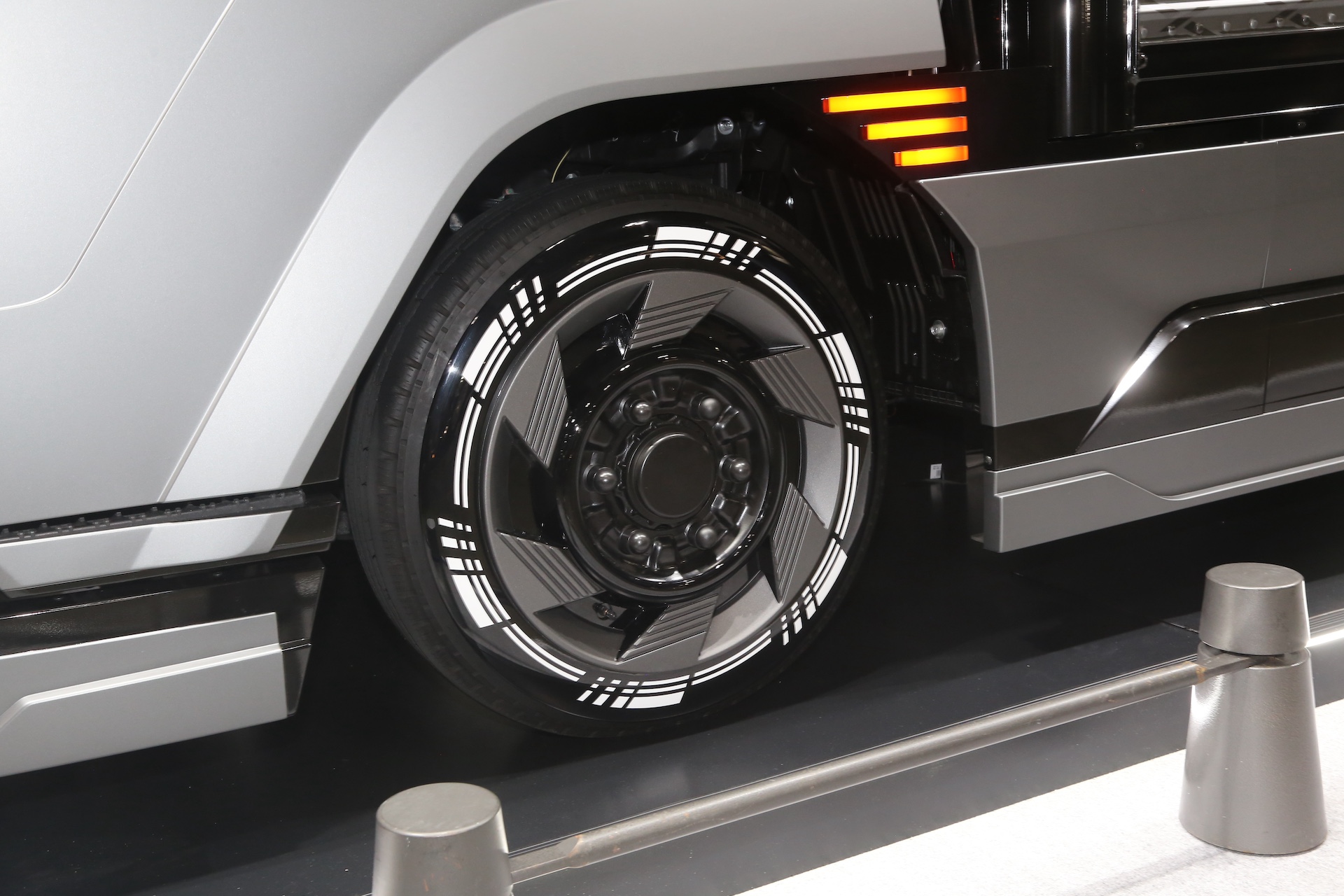 リアに回ると、GTレースマシンを彷彿させる巨大なディフューザーを備えたリアバンパーがレーシーなフォルムを形成。まさに未来のトラックの世界を演出したコンセプトトラックに仕上がっていた。
