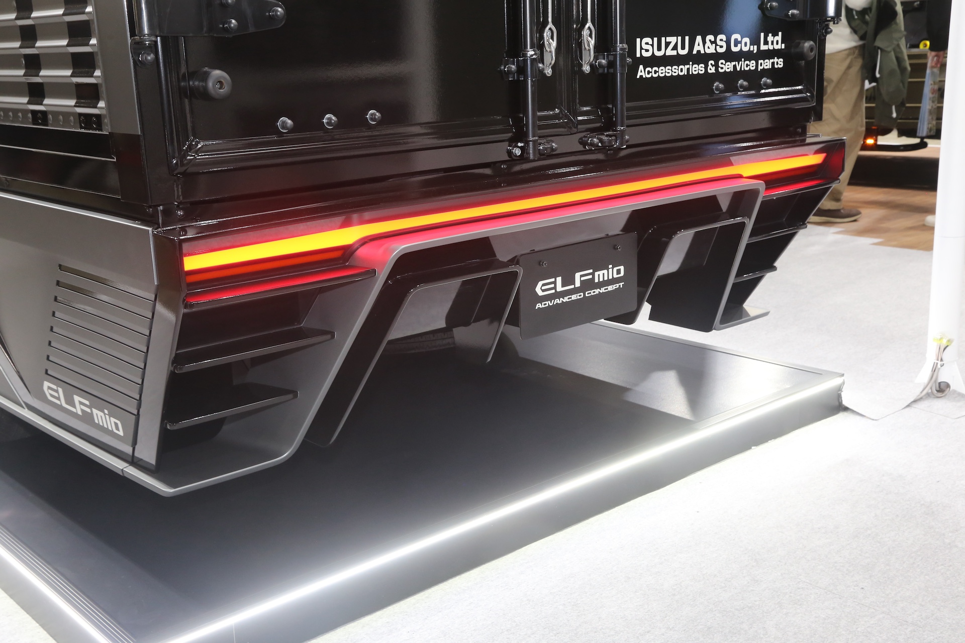 今回紹介する車輌はエルフミオの箱車をベースにした「ELFmio ADVANCED CONCEPT(エルフミオ アドバンズド・コンセプト」。フロント、サイド、リアに近未来的なデザインのエアロパーツを装備し、そのパーツもコンセプトカーでありながら今後の実現性も意識したデザインになっていた。