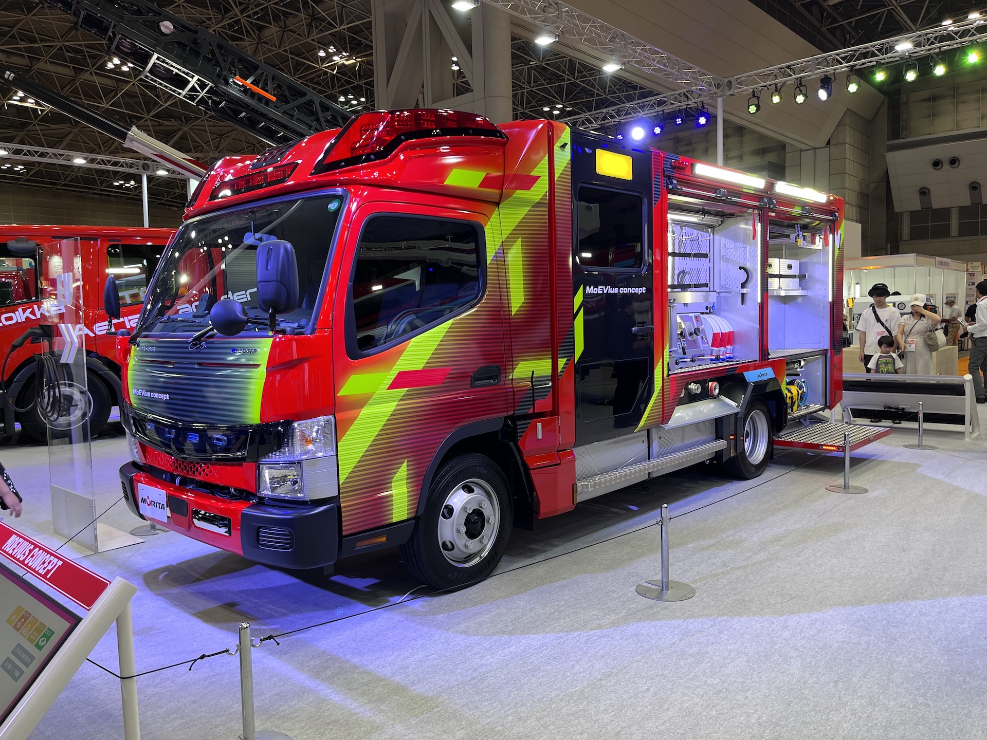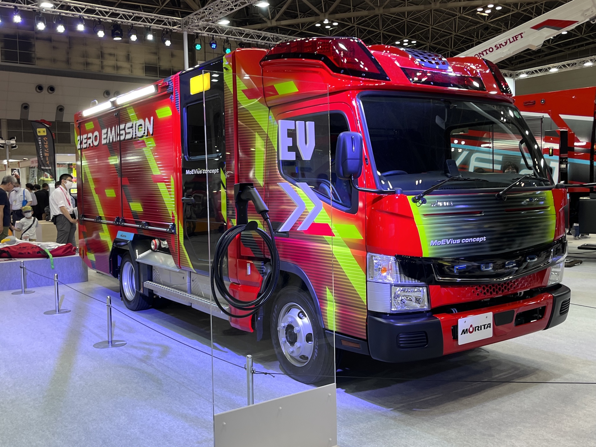 国内メーカーも負けてはいない。消防車架装大手のモリタは、同展示会で「MoEVius concept(メビウスコンセプト)」を展示。この車輌は、eキャンターをベースにした次世代型の消防ポンプ車だ。もちろん、コンセプトモデルなのでそのまま市販車として市場に出ることはないだろう。しかし、近い将来に防災現場で、EV消防車が活躍することは間違いないと思わせるのに、十分な仕上がりであったといわれている。