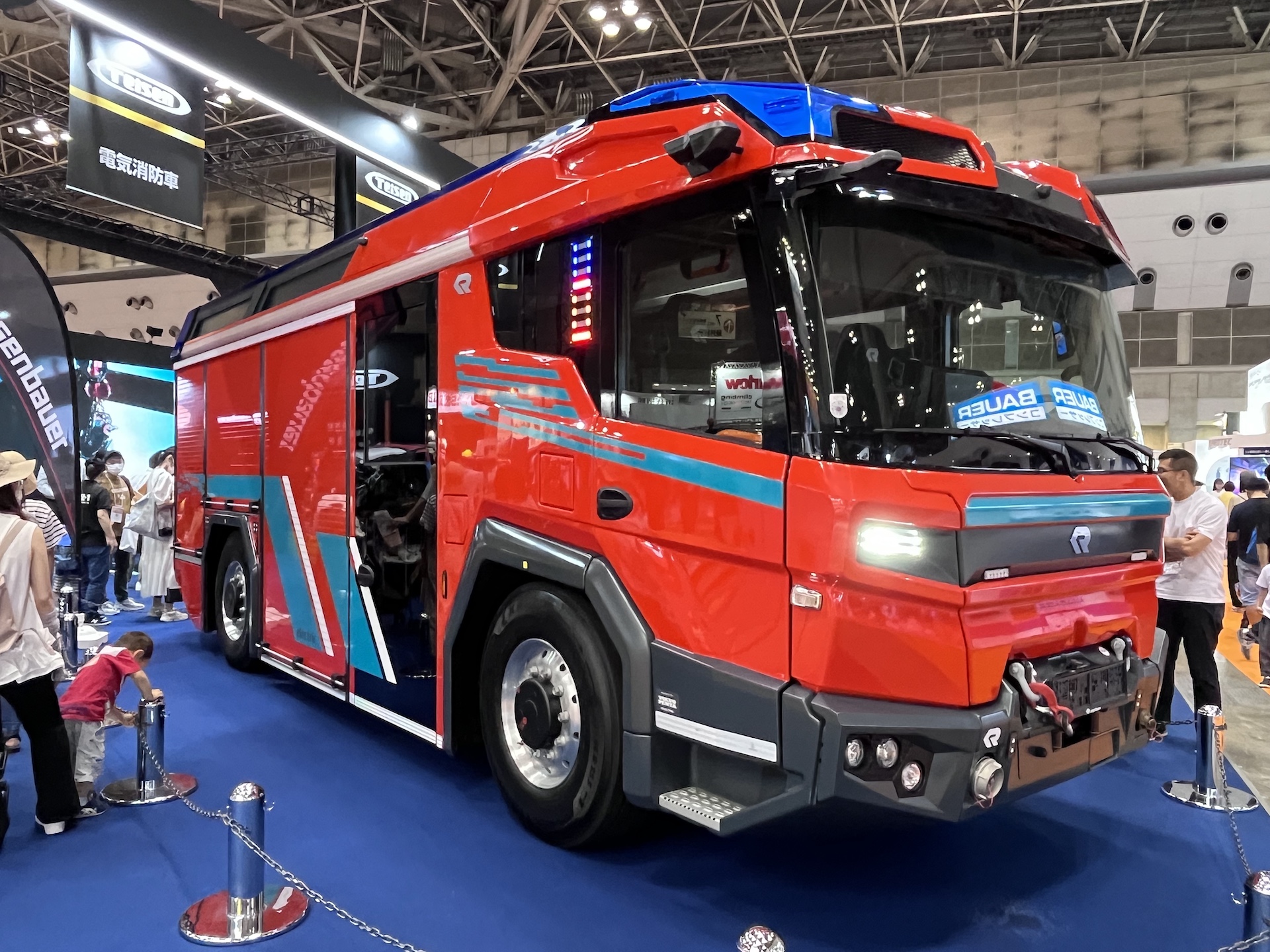 詳しい人から見れば、大型車輌の割にバッテリー容量が小さいと感じるかもしれないが、これは車輌重量を抑制するための工夫。おかげで、水4000ℓと消火液400ℓ積むことができるのだ。2023年に東京・ビッグサイトで開催された「東京国際消防防災展」では、輸入元の帝国繊維が展示を行い、来場者の注目を集めたという。
