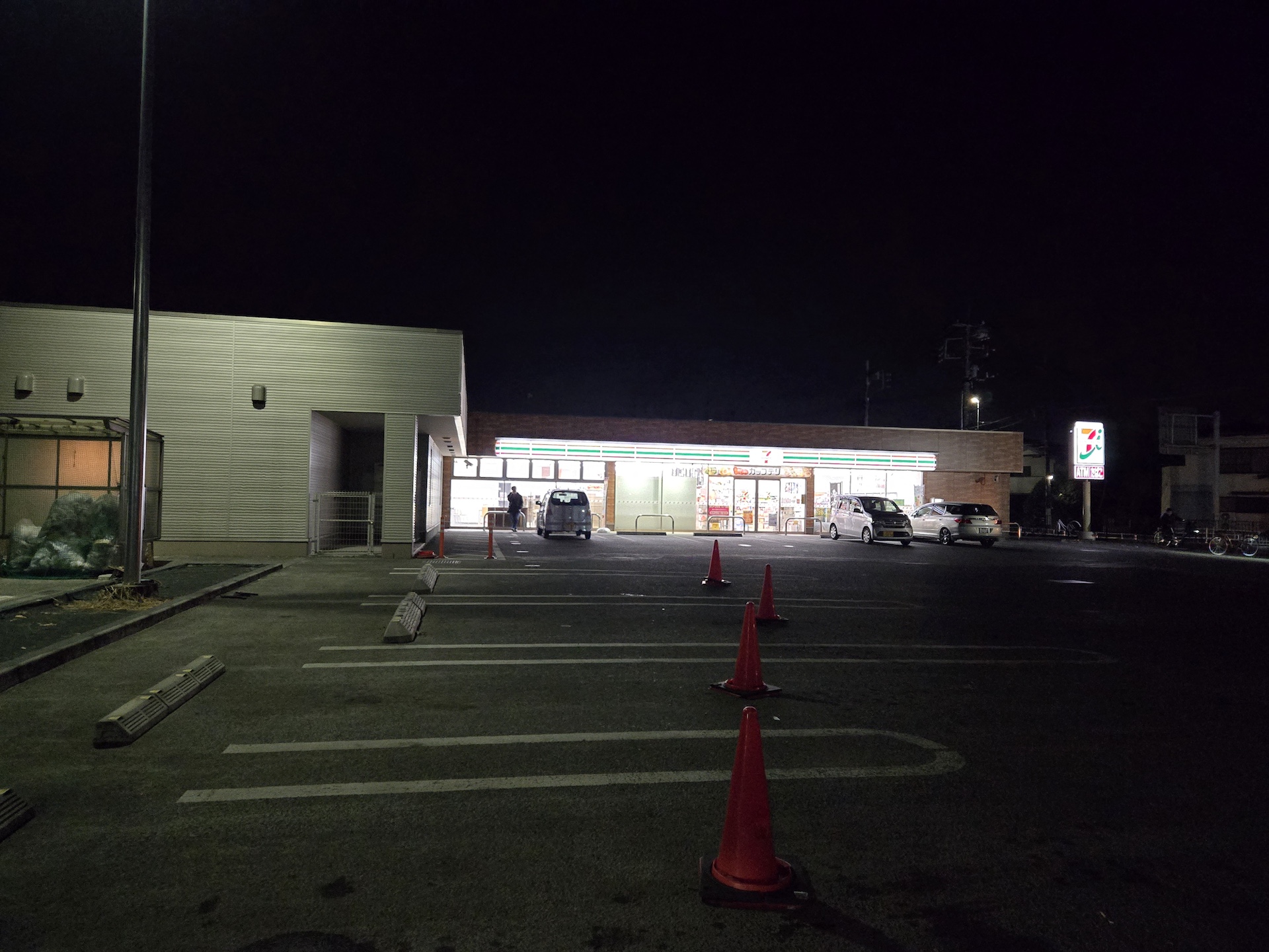 その後、無事にトラックステーションには到着し、隣接するコンビニの駐車場に車を停めて、コーヒーを買いがてらトラックステーションの様子を伺うことにした。するとコンビニの裏口がトラックステーションと繋がっていることを発見。さっそく歩いて敷地内に入ってみることにした。