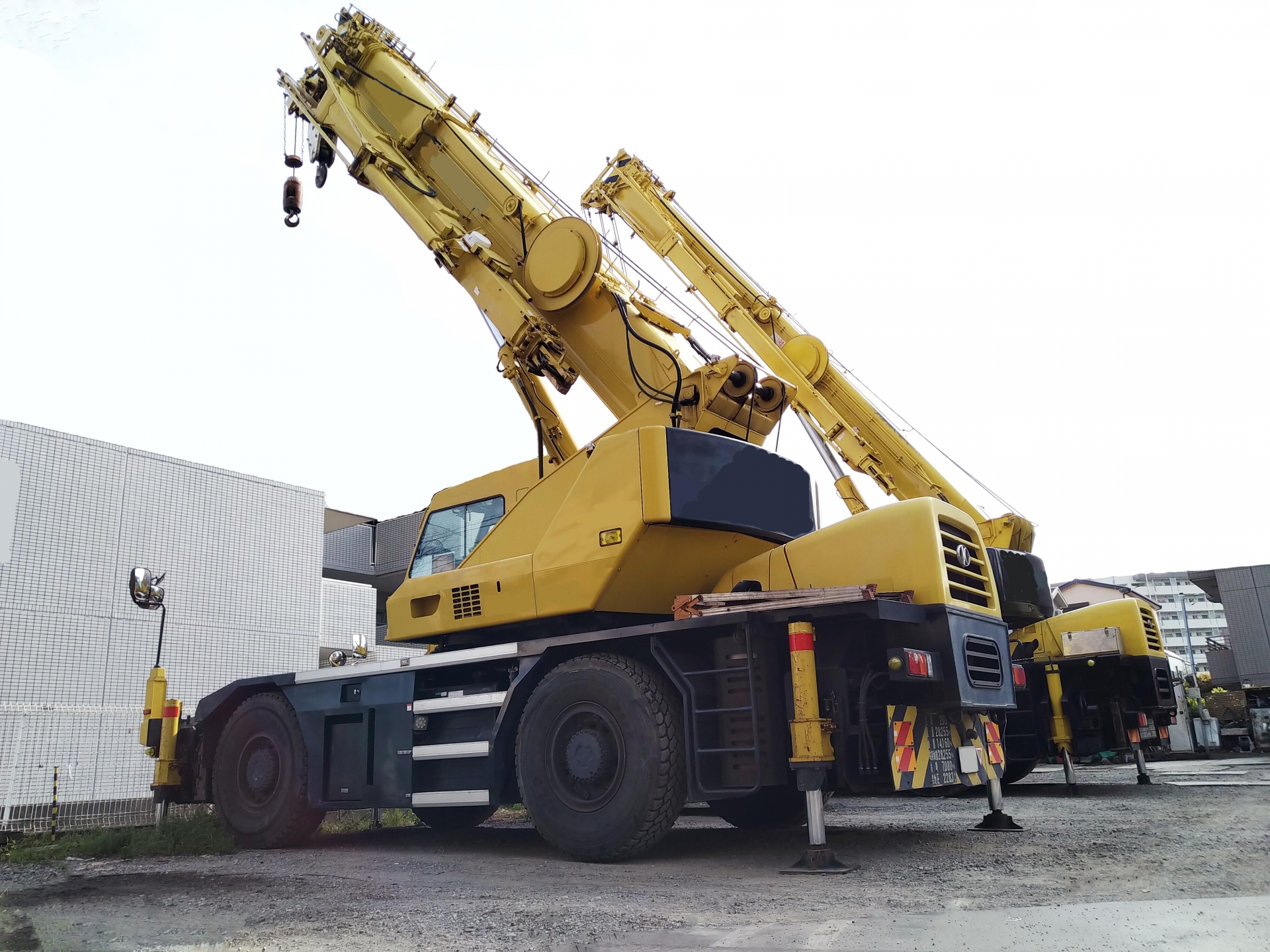 またオールテレーンクレーン(あらゆる路面に適応した移動式クレーン。大きなクレーン能力を持ちながら小回り性に優れており、狭い現場で大きい吊り上げ能力を必要とする作業に使用される)も。走行することができるクレーン車の中でも、かなり大型なため、緩和標章が取り付けらます。