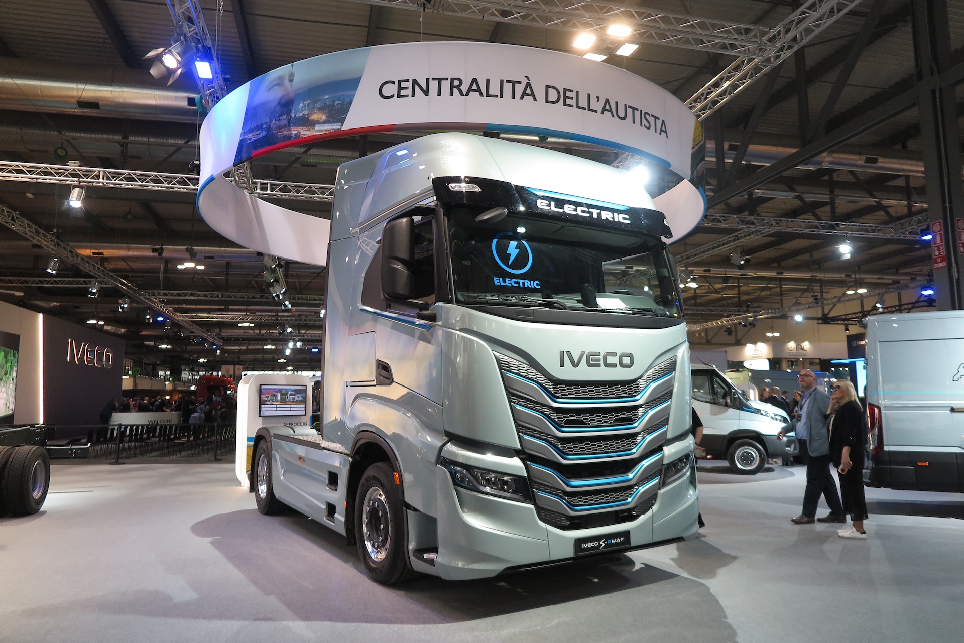 イヴェコは、すでに圧縮天然ガス(CNG)トラックを実用化。これは化石燃料内燃機関なのでCO2などを排出しないわけではないが、ガソリンやディーゼルに比べると極めて少量に抑えられるので、環境に優しい動力とされている。今回の展示会では、EVだけではなくCNG車もラインナップしていた。