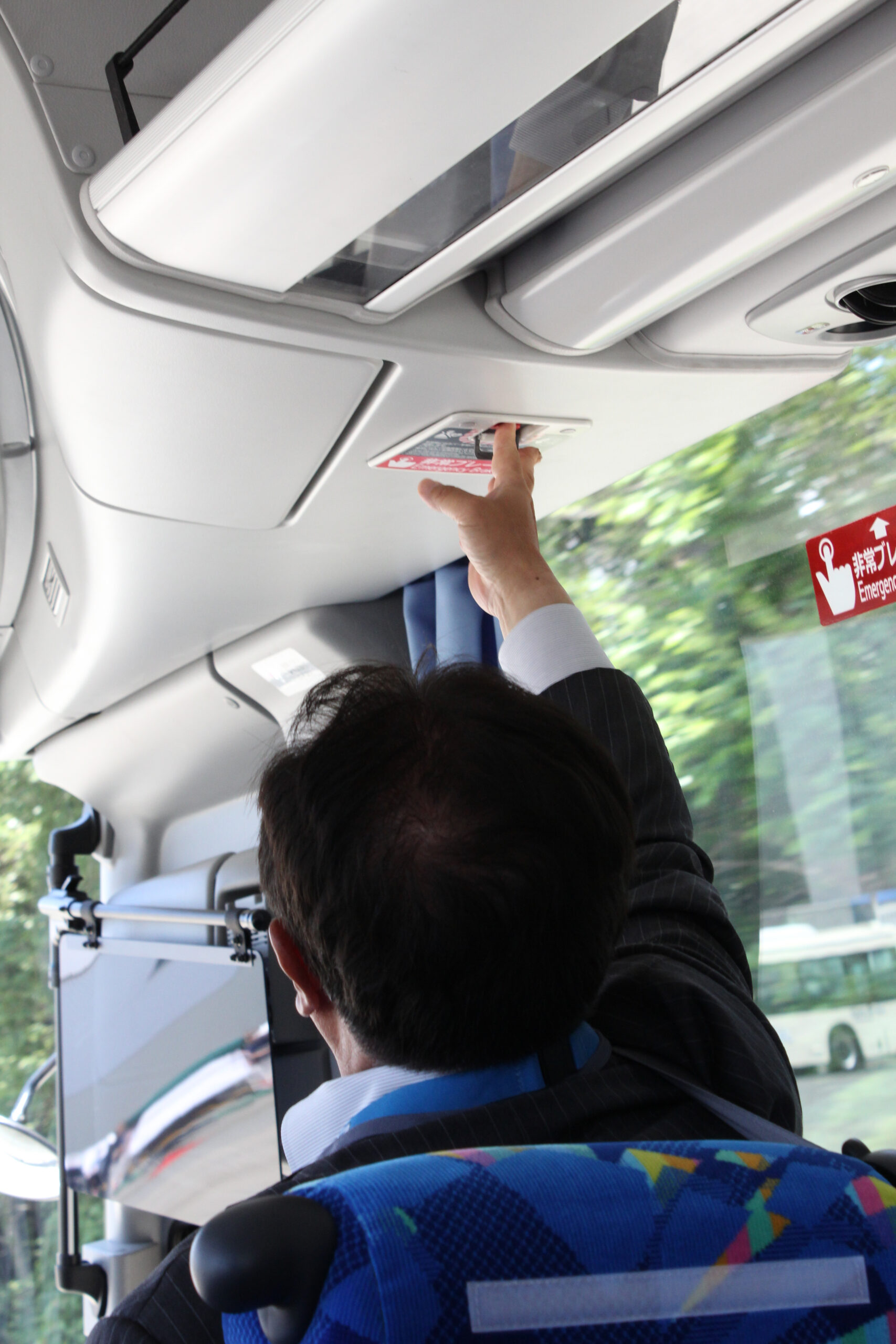 バスの場合は、ドライバーが急病などで運転不能に陥ったときに、ドライバーや乗客が作動させることができる「ドライバー異常対応システム」を搭載しているものが増えてきた。緊急事態が発生したときにこの装置を作動させることで、ハザードやホーンを使って外部に警告を発しながら、自動的に車輌を停止させて緊急通報まで行ってくれる。乗客の安全を考えた、バスならではの装置といえるだろう。