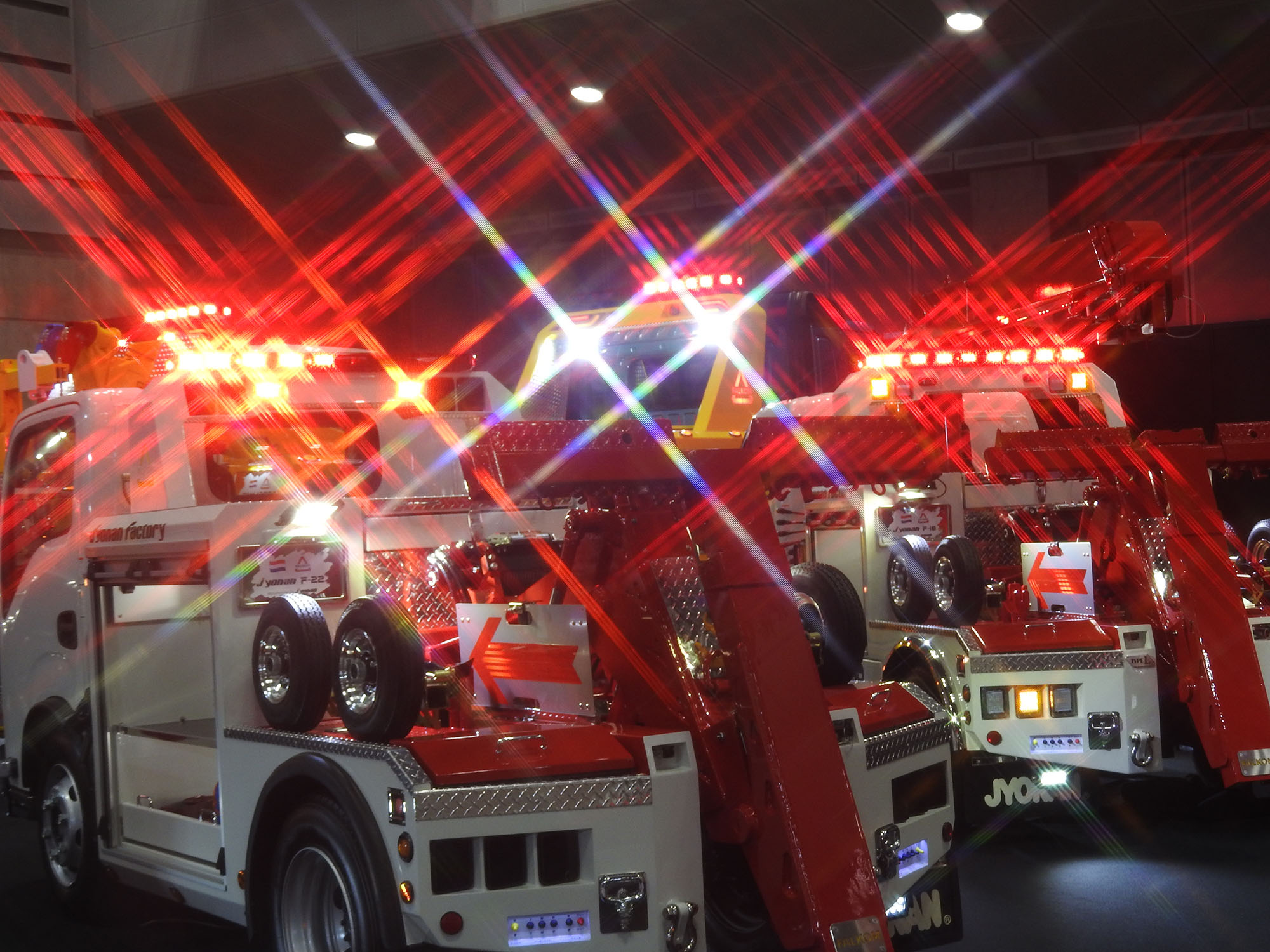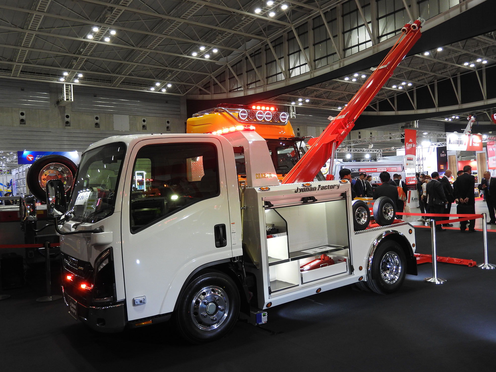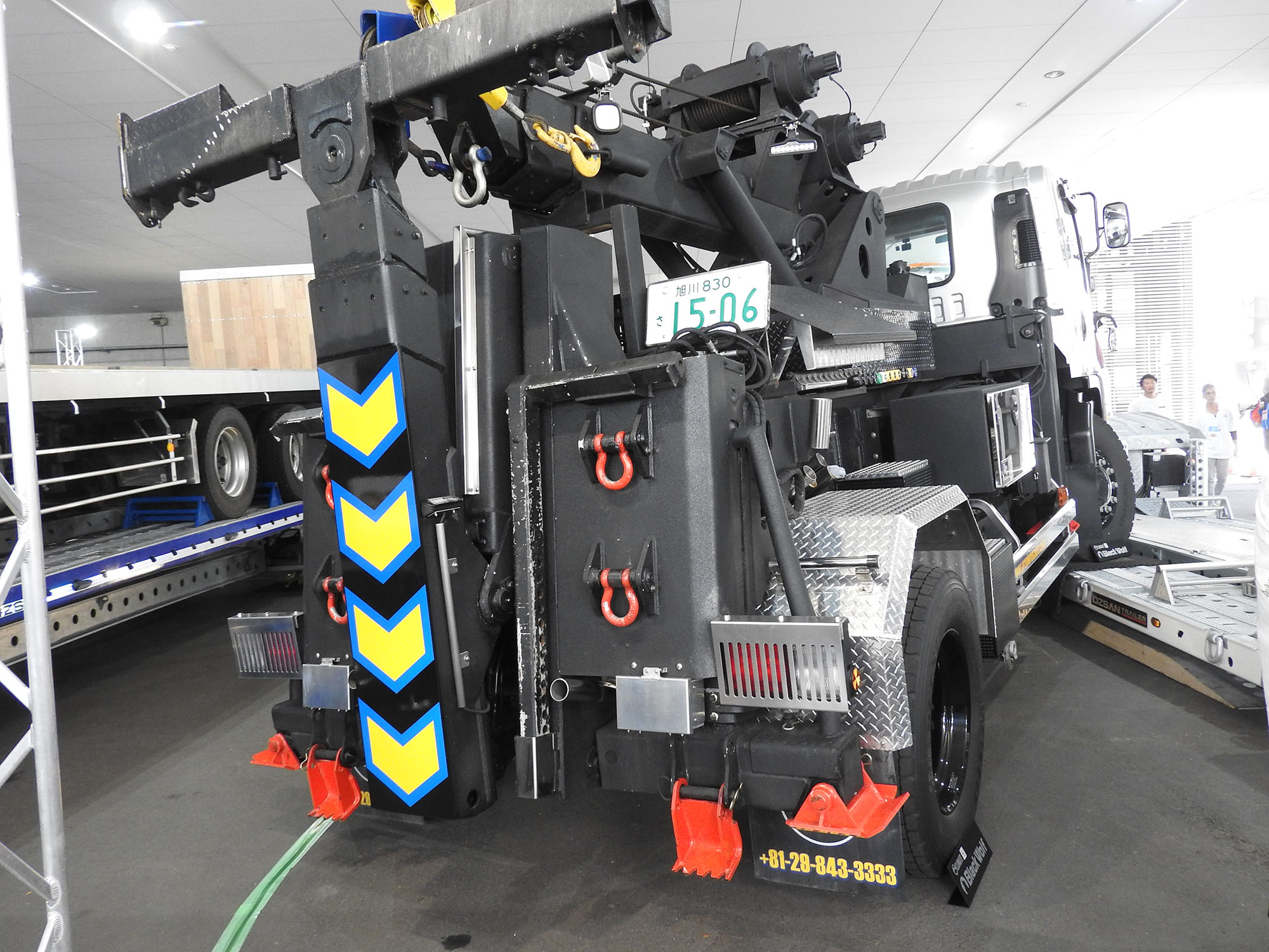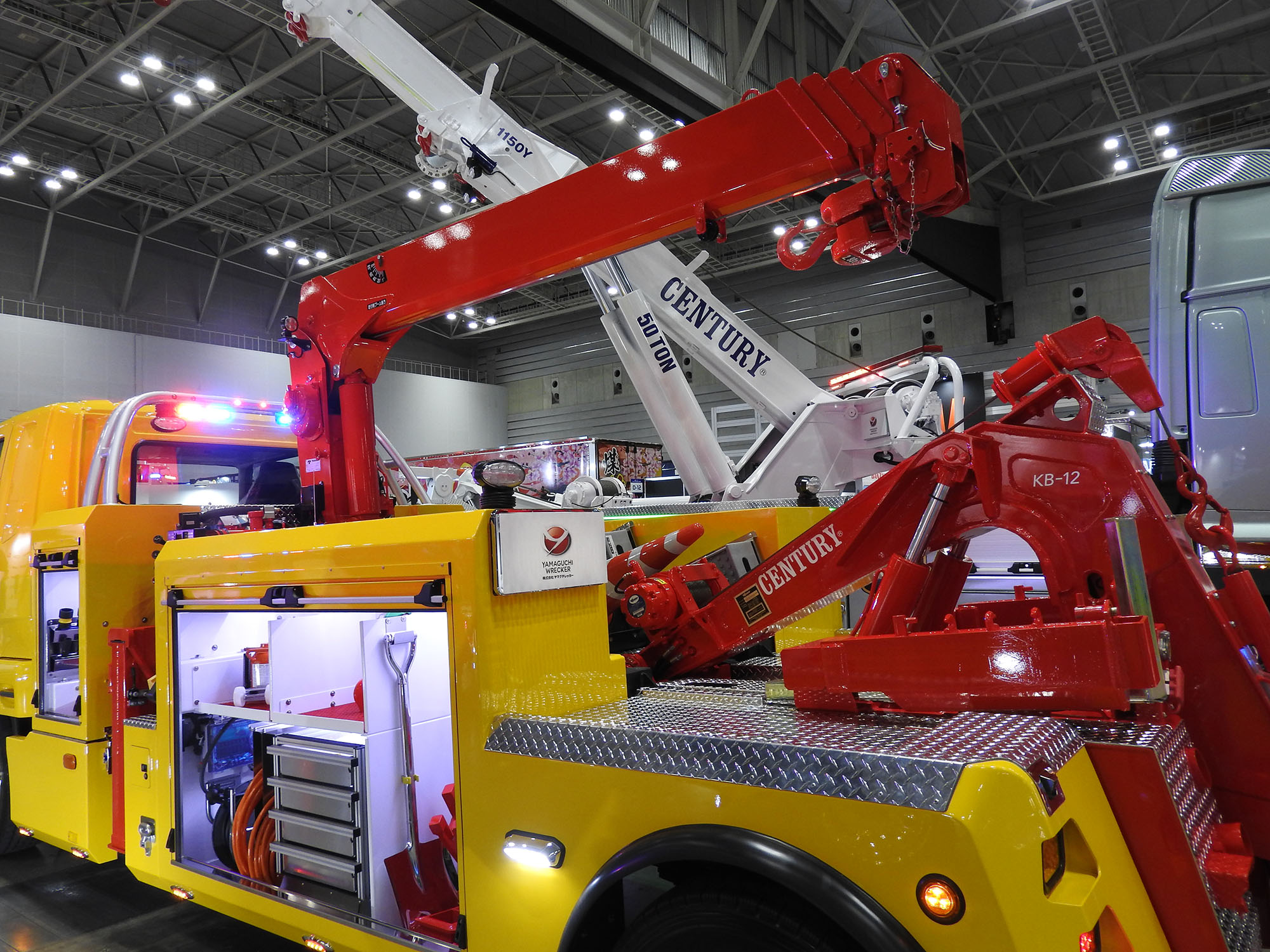 さらに注目を集めていたのは、アンダーリフトと一体化しているレッカーブームの起伏角度を変えられる機能。これなら、狭い駐車場やT字路などで作業を強いられる場合でも、短時間で車輌を引き出せるのではないだろうか。また、事故現場などでの横転車輌の引き起こしや、災害現場での救難活動といった出動も想定されるため、それらの作業に対応できる機能の充実も図られている。利用シーンが広がるなかで、レッカー車は今後も進化を続けていくことになりそうだ。