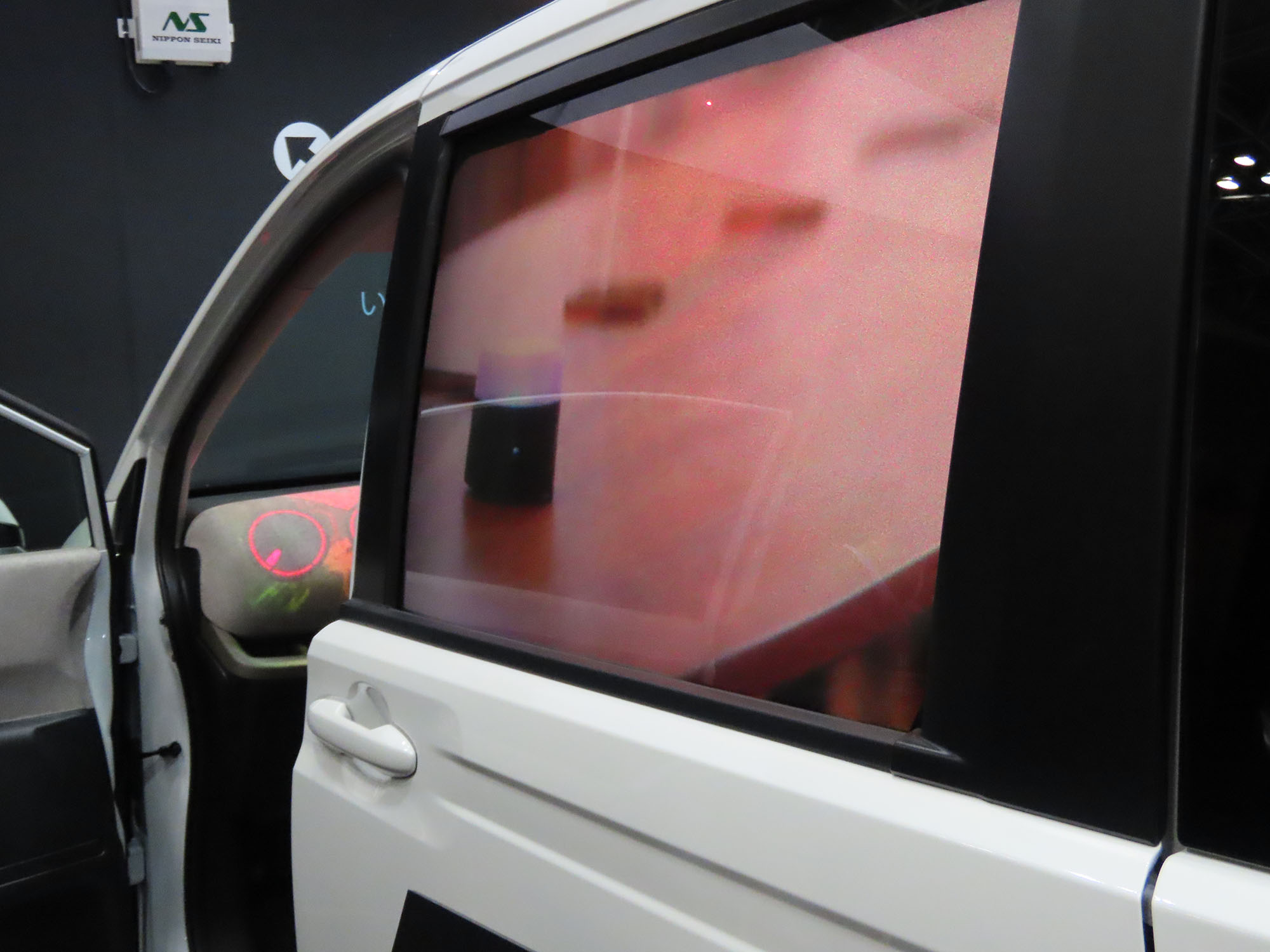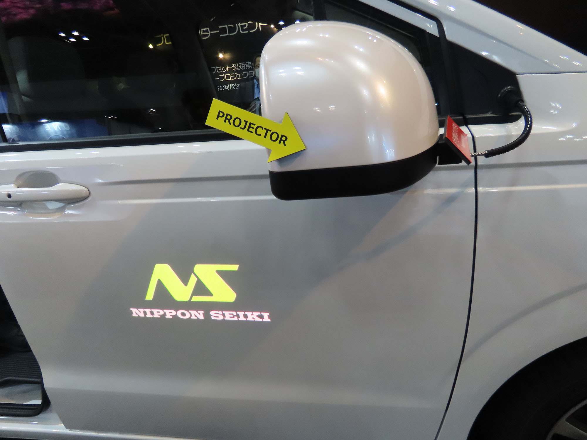ところが、2025年1月に東京ビッグサイトで開催された「オートモーティブワールド2025」において、画期的な装置が展示されたのである。それが、日本精機の「オフセット超短焦点レーザープロジェクター」だ。この装置の投射原理はこれまでと同様だが、超短焦点なので近接したスクリーンに、歪みなく映像を映し出せるのである。たとえば車輌のボディサイドに映像を投射するのであれば、サイドミラーの下部などに映写装置を設置すればよいわけだ。