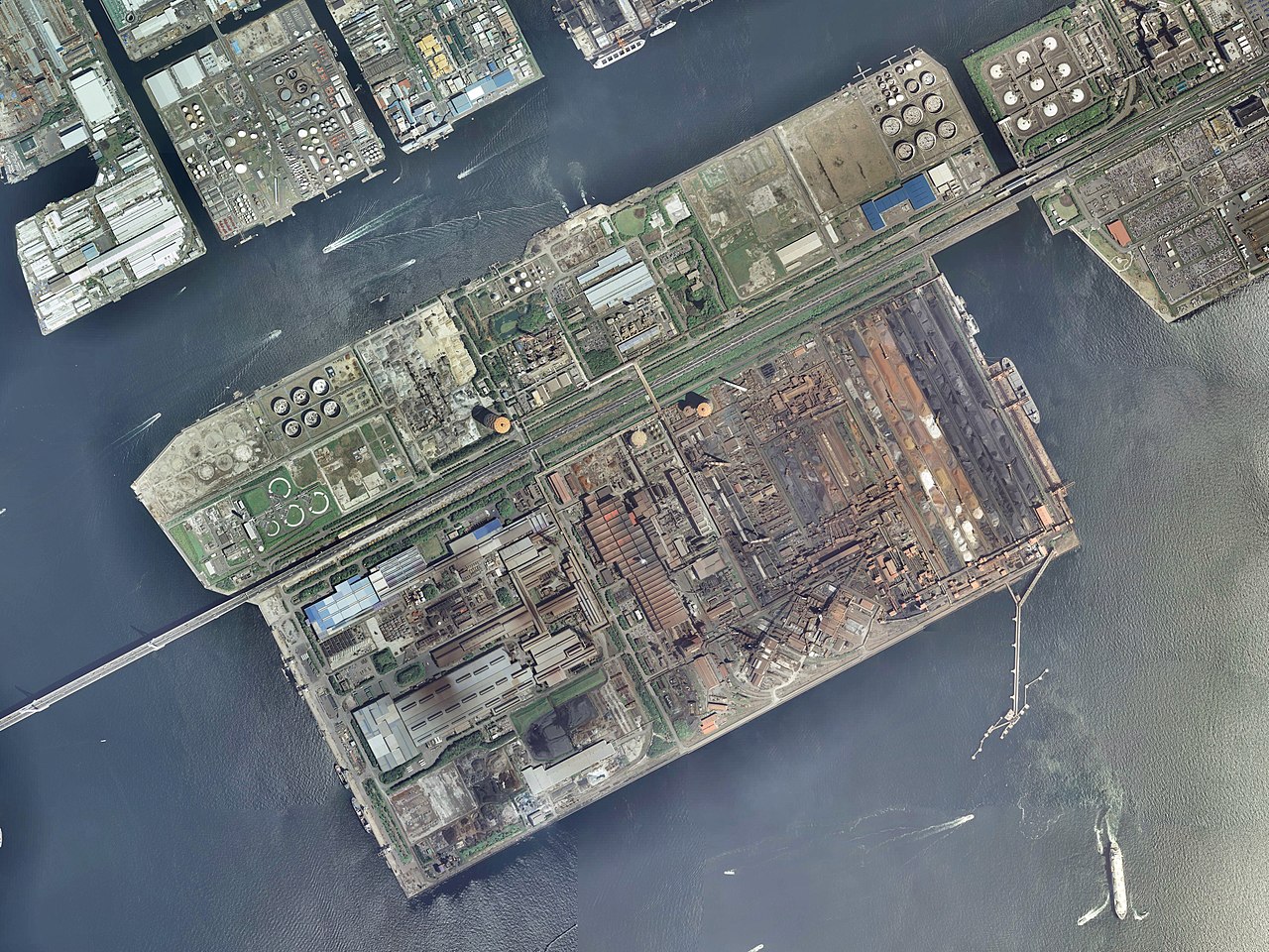 扇島は、川崎市と横浜市にまたがって作られた人工島で、その面積は約550万平方メートルだ。この扇島は1969年に扇島計画がスタートし、5年後の1974年には埋め立てが完了。その後1976年には島内の製鉄所が稼働を開始している。この扇島は川崎工業地帯内に散らばっていた日本鋼管(現JFE)京浜製造所の工場を一か所にまとめて生産性の向上や公害対策を図る目的があった。