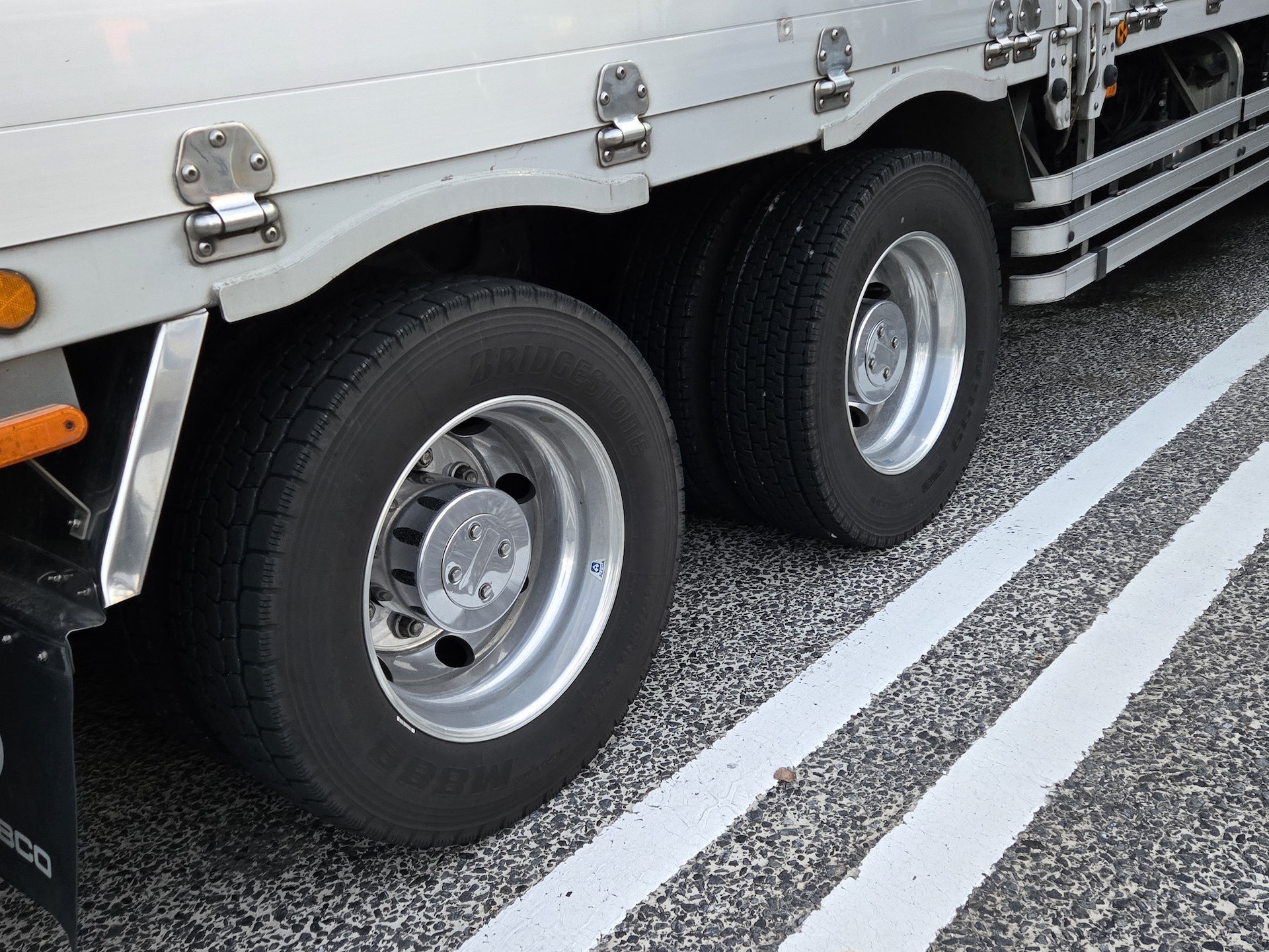 そしてふたつ目の理由は荷台の高さを低くするためです。ダブルタイヤのトラックは、前輪タイヤに対して後輪タイヤ1本の外径は小さなサイズを採用しています。これにより、荷台が低くできるので、荷物の積み下ろし作業の効率が上がります。