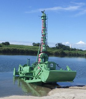 独自の設計によって水上と陸上の両方で運用できる特殊な建設機械だということは説明したとおりですが、河川や湖沼、湿地、干拓地など、従来のブルドーザーでは対応が困難だった環境下でも高い作業効率を発揮します。