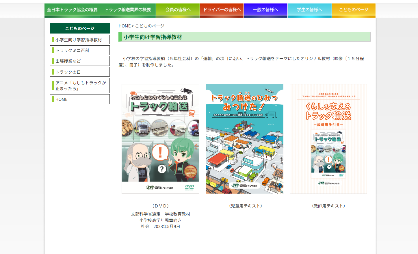 「こどものページ」という名前で表示されているが、かなり充実した内容となっている。特に児童用テキストは、かなり深い部分までわかりやすく説明されていて大人が読んでも十分に理解を深めることができる。いろいろなトラックの紹介はもちろん、SDGSなども解説してる充実ぶりだ。
