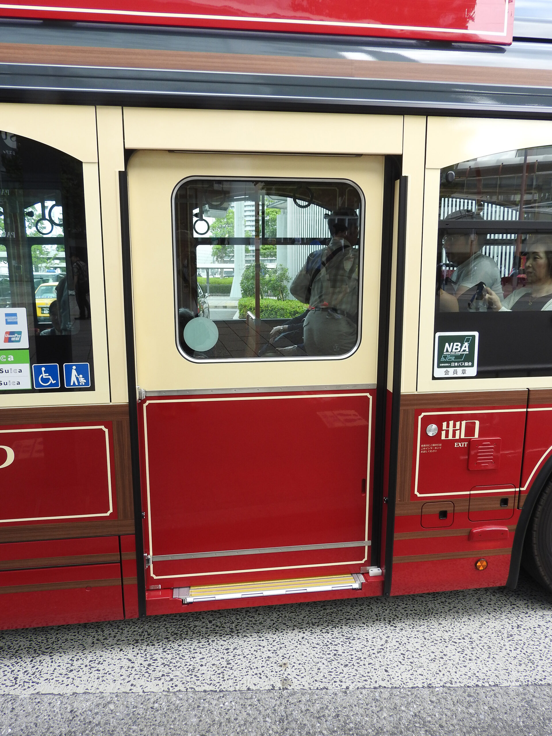 バスの機器類の多くは、基本的に床下に収納されている。そのためにどうしても床が高くなり、乗車するには1~2段程度ステップを上がらなければならなかった。しかし、バリアフリーの考え方からノンステップ(低床)バスが開発された。このバスは前方から半分程度の床を低くしているために、床下の機器類を後部に移す必要がある。エンジンもリアに配置されていることが多いので、後部の床は逆に高くしなければならなくなった。そうなると、後部にドアを設置することはできない。路線バスの多くが2枚目のドアを中央に配しているのは、こういった事情によるものなのである。