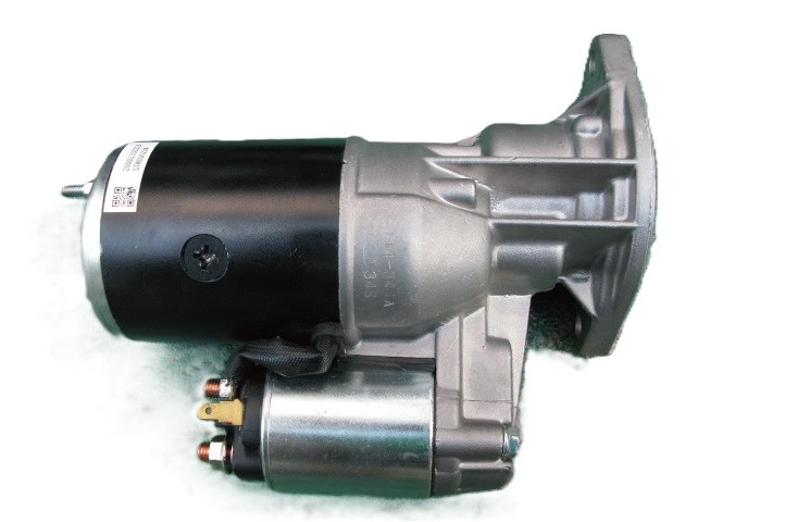 一般的な乗用車は12ボルトだが、なぜトラックは24ボルトなのか。それは単純に12ボルトだとパワー不足だからだ。では何のために24ボルトのパワーが必要なのかといえば、それはトラックはほとんどがディーゼルエンジンであり、ディーゼルエンジンは回転抵抗が大きいため、12ボルトだとセルモーターがうまく回らないことがあるためだ。セルモーターが回らなければエンジンが始動できないため、確実にセルを回すには24ボルトが必要なのだ。(上の画像はセルモーターの単体)