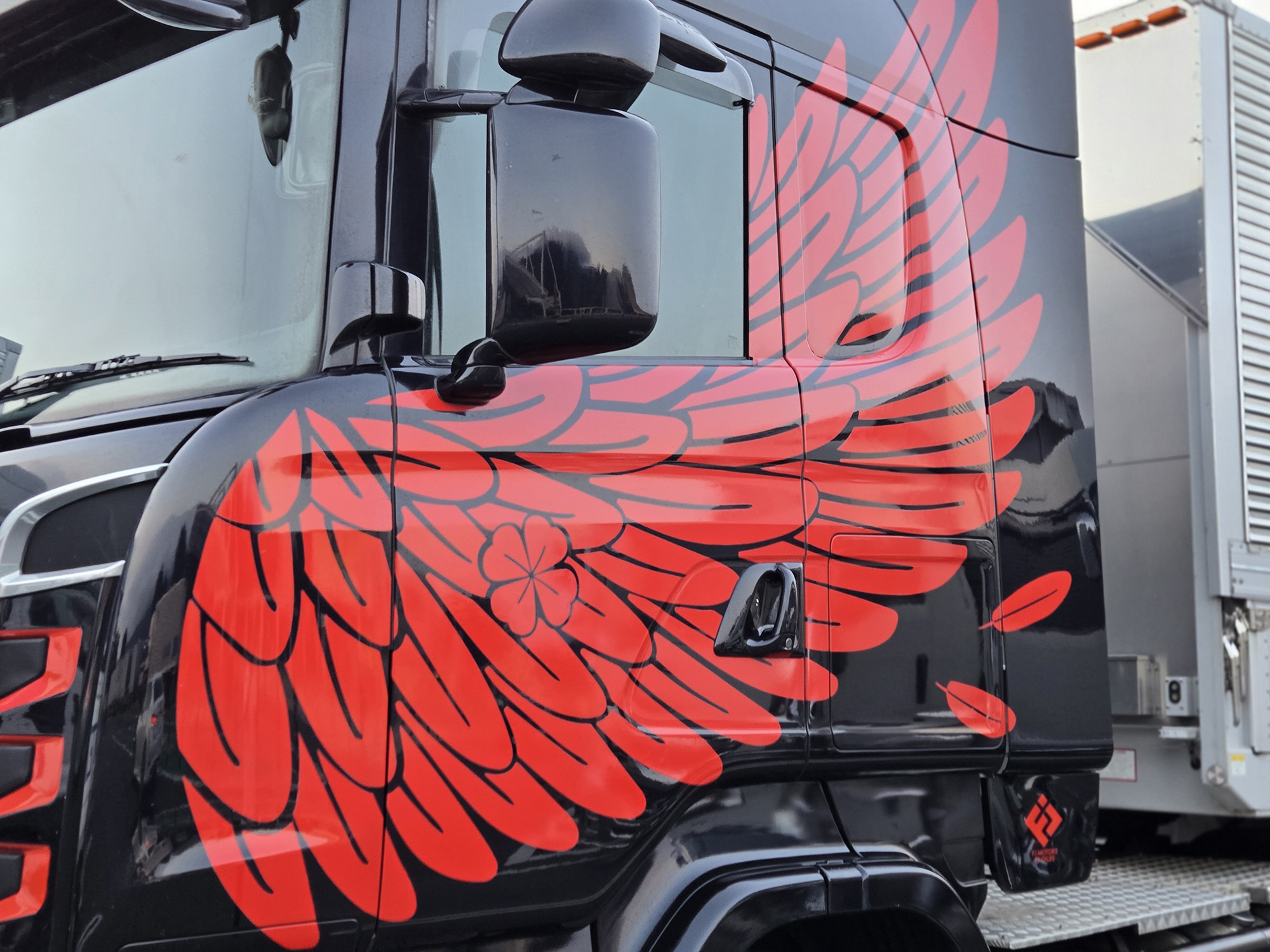 めちゃくちゃ目立っていた、翼のイラストが描かれた一台。キャビンの形に沿って描かれていて存在感は抜群だった。ラッピングかな? と思って近づいてみたが、しっかりとペイントされた本気のグラフィック。迫力とスピード感あふれる1台でした。
