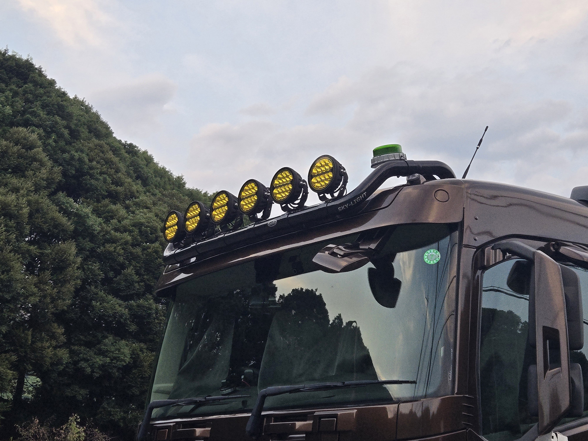 スカニアなどユーロ系ではよく見かけるルーフ上のフォグ。これが付いているだけで、長距離を走りきる勇ましさを感じてしまうのは筆者だけではあるまい。機会がまだないのだが、これらのライトを全点灯したシーンをいつか見たいと思っている。