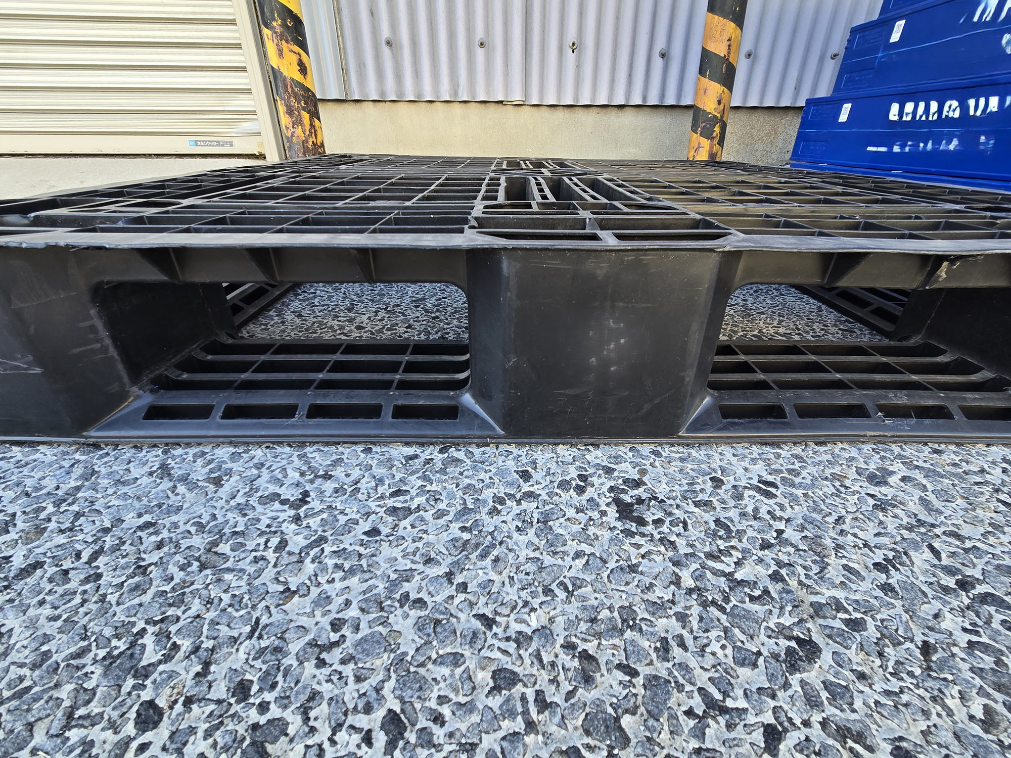 では最後にパレットの穴部分についてのなるほど部分を解説しておこう。プラスチック製のパレットをよく見ると、フォークリフトのツメを差し込む部分に傾斜がついているのがわかる。実はこの傾斜、非常に重要なものなのだ。