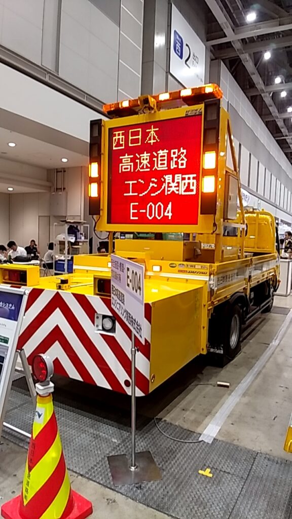 突っ込み事故を防ぐべく、規制帯を作るときには様々な車両や道具が使用される。まず、活躍するのは標識車だ。車両は主にSUVや平ボディの中型トラックで、天井部や後部に大きな看板が設置されている。旧いタイプは巻取り式の表示幕が使用されているが、新しいものは電光板が搭載されており、より目立つ仕様になっている。表示内容は、「工事中」「左(右)に寄れ」「事故発生中」「車線規制中」などで、一般通行車両に規制があることを知らせる役割を持つ。