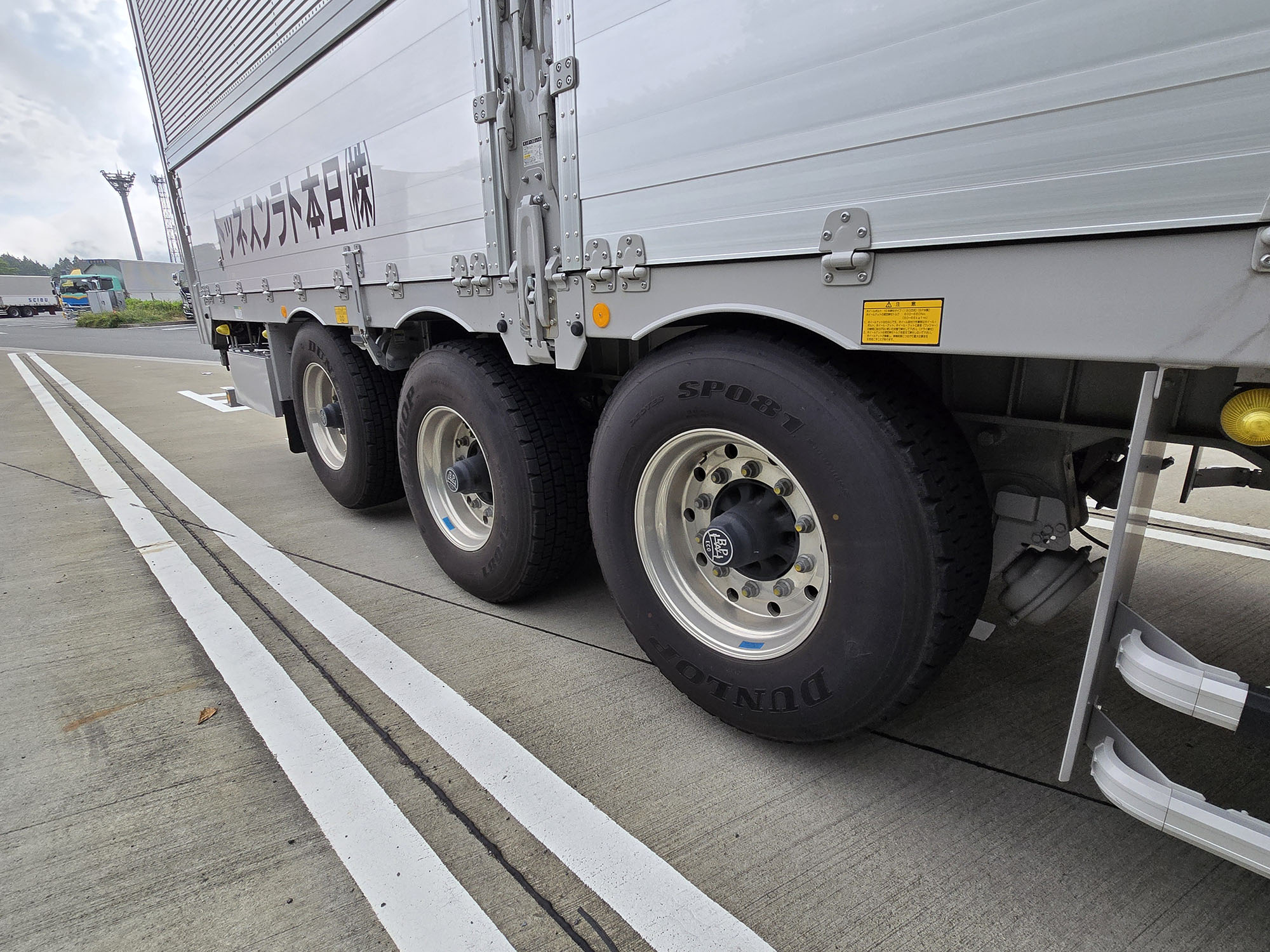 パーキングエリアなどで停まっているトラックのタイヤを見てみると、大きさや車種によってタイヤのスペックが違ってることがわかるはずです。軽トラックなどはタイヤも小さく、一般的な乗用車と同じですが、公道を走れる重機や大型トレーラー、ウィング車などは、それぞれの車格にあったタイヤがチョイスされているのです。