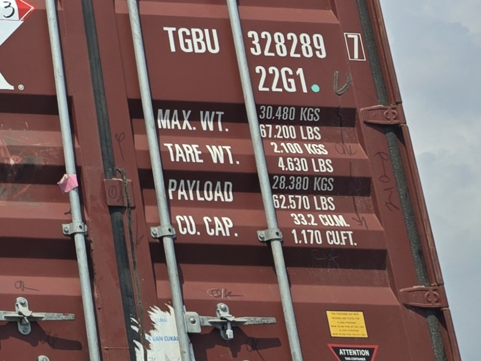 コンテナの自重を差し引いた積載重量「Max Payload」は最大積載重量のこと。