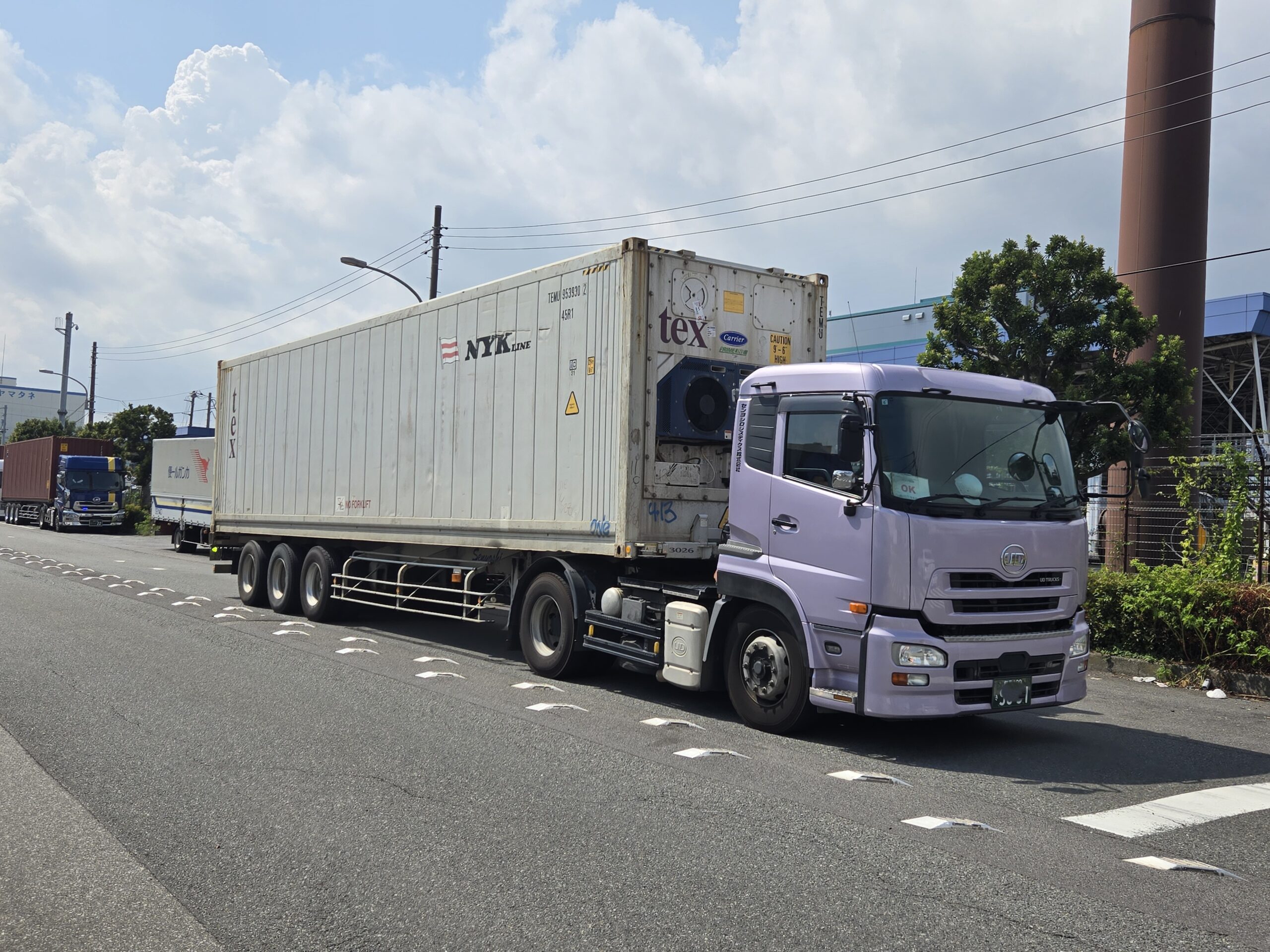 コンテナをトレーラー(シャシー)にのせて輸送すること。
