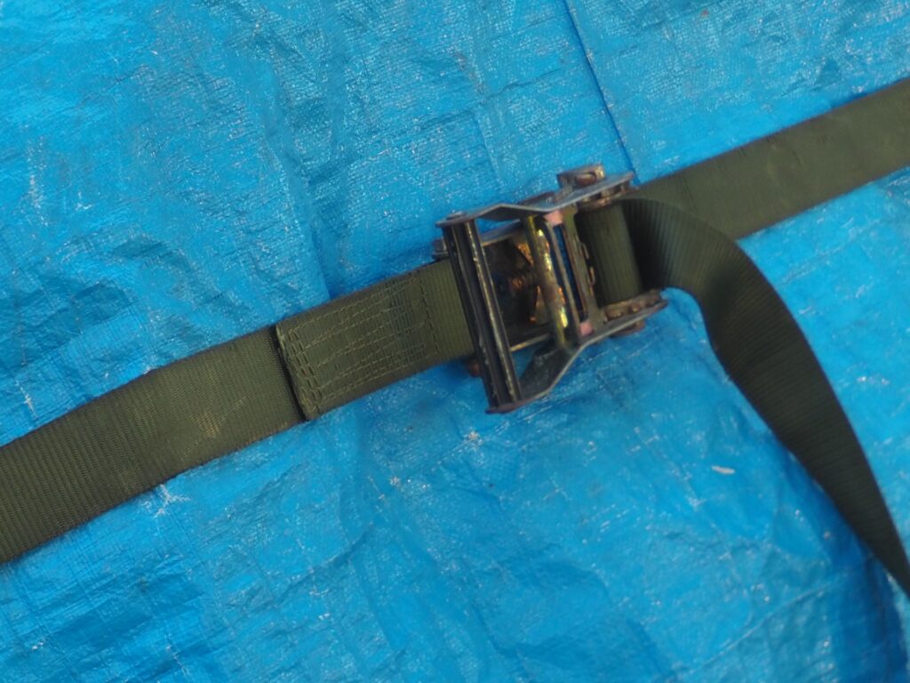 固定するときは、まずベルトをラチェットに通し、緩みが出ないように手で仮締めを行った後、ラチェットのレバーを前後に動かして巻き取ります。そして最終的にしっかりと張られていることを確認しますが、ベルトにねじれがあると締まり具合が不均一になるため、常にベルトが平行であることが重要です。