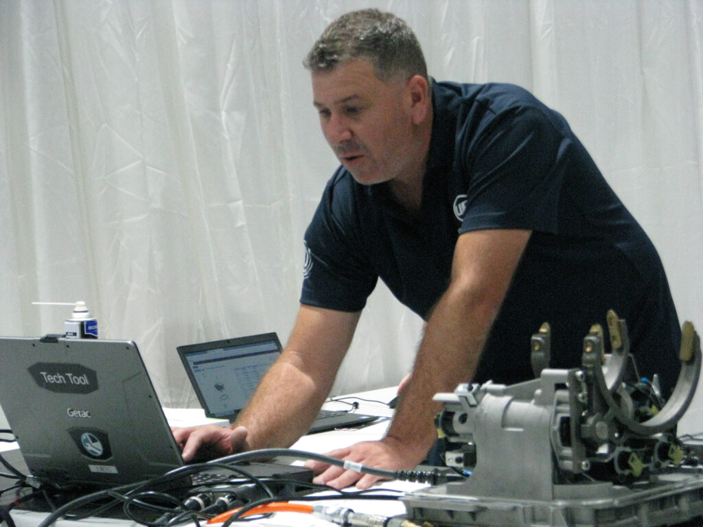 4つ目は、トランスミッションだ。コントロールハウジングにあるシフトフォークを確認し、不具合を特定して修正したのちに再度チェック。トランスミッションの構造を理解していることや、不具合についてサービス情報で確認し、それに沿って対処することが求められる。5つ目は部品管理に関するもので、保証期間対応用部品の保管・管理状態やそれにかかわる申請書の記載事項を確認する。
