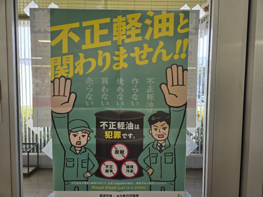 そもそも不正軽油とは、主にディーゼル車の燃料として使用される軽油に、脱税を目的として灯油や重油などを混ぜ、軽油と偽り販売、使用されているものを指す。ここでのポイントはふたつあり、そのひとつは「脱税」、そしてもう一つが「灯油や重油を混ぜる」だ。