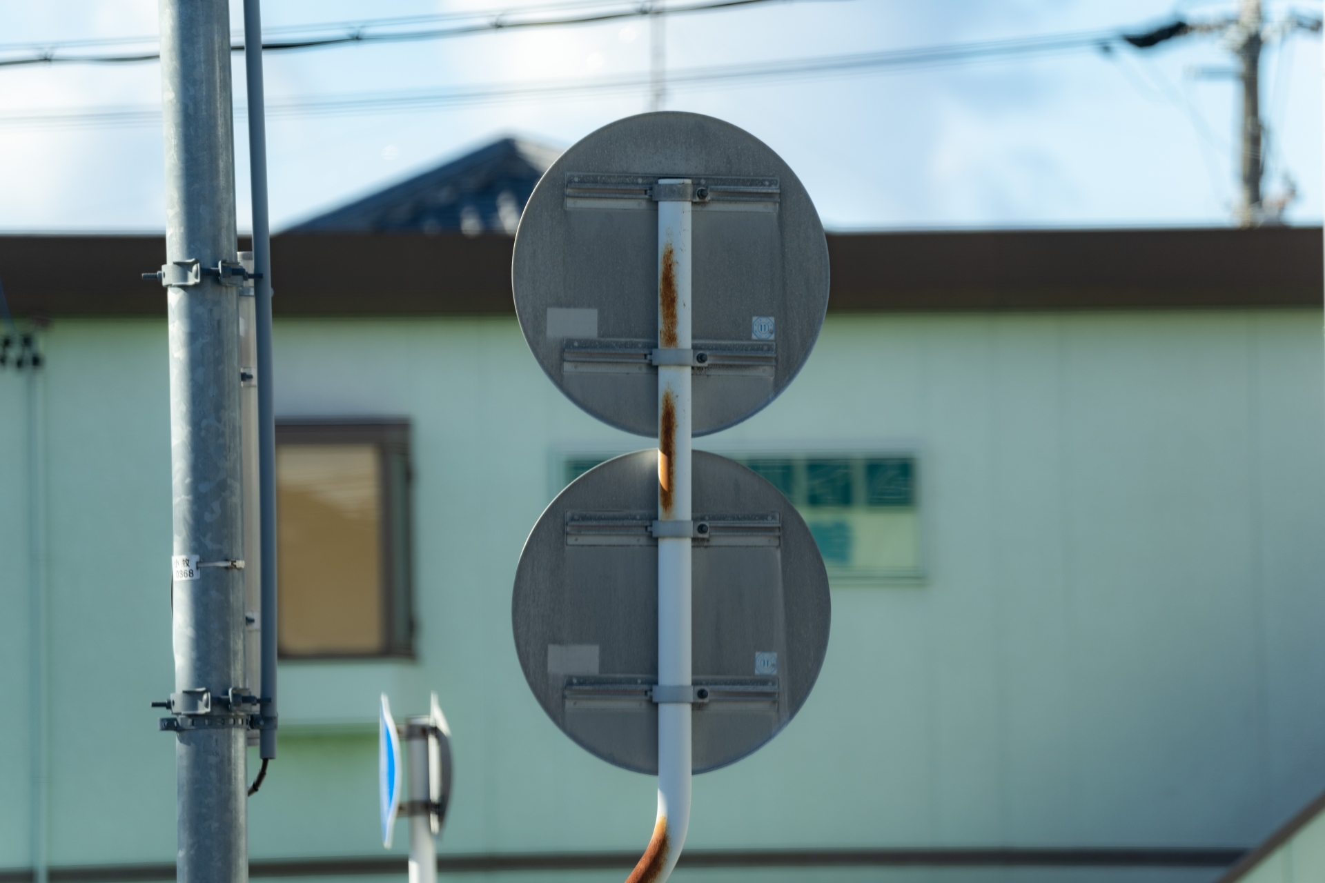 では最後に標識の裏側の色について説明しよう。標識の裏面は通常、無塗装でアルミ地のままだ。ただし、景観への配慮が必要な場所では茶色などの目立たない色に塗られているケースもある。