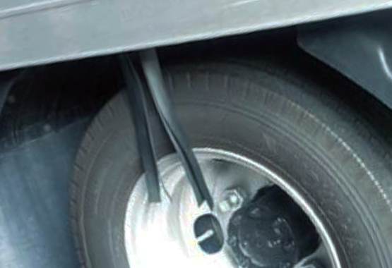 トラックでよく見られたグッズとして記憶に残るのは、タイヤに擦れるように取り付けられていたゴムや布切れであろう。これは、一般ドライバーにはほとんど馴染みがない。これらは飾りというよりも、タイヤを自動的に磨く機能を持った便利アイテムだ。トラックは様々な場所を通りながら長い距離を走るので、どうしてもタイヤが汚れていしまう。未舗装路など土埃の多いところを通れば、黒いタイヤに白く汚れがついてしまう。ゴムや布切れは、それをこすり落としてくれるのだ。