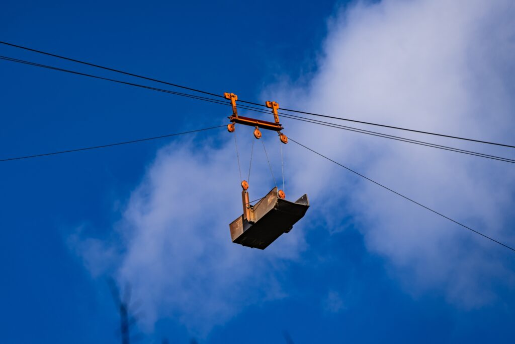 ケーブルクレーンは、ふたつの支柱間に張られたメインロープを利用したクレーン。その上をトロリーが移動し、広い範囲をカバーできる。またケーブルクレーンに「固定式ケーブルクレーン」「片側走行ケーブルクレーン」「両側走行ケーブルクレーン」などがある。