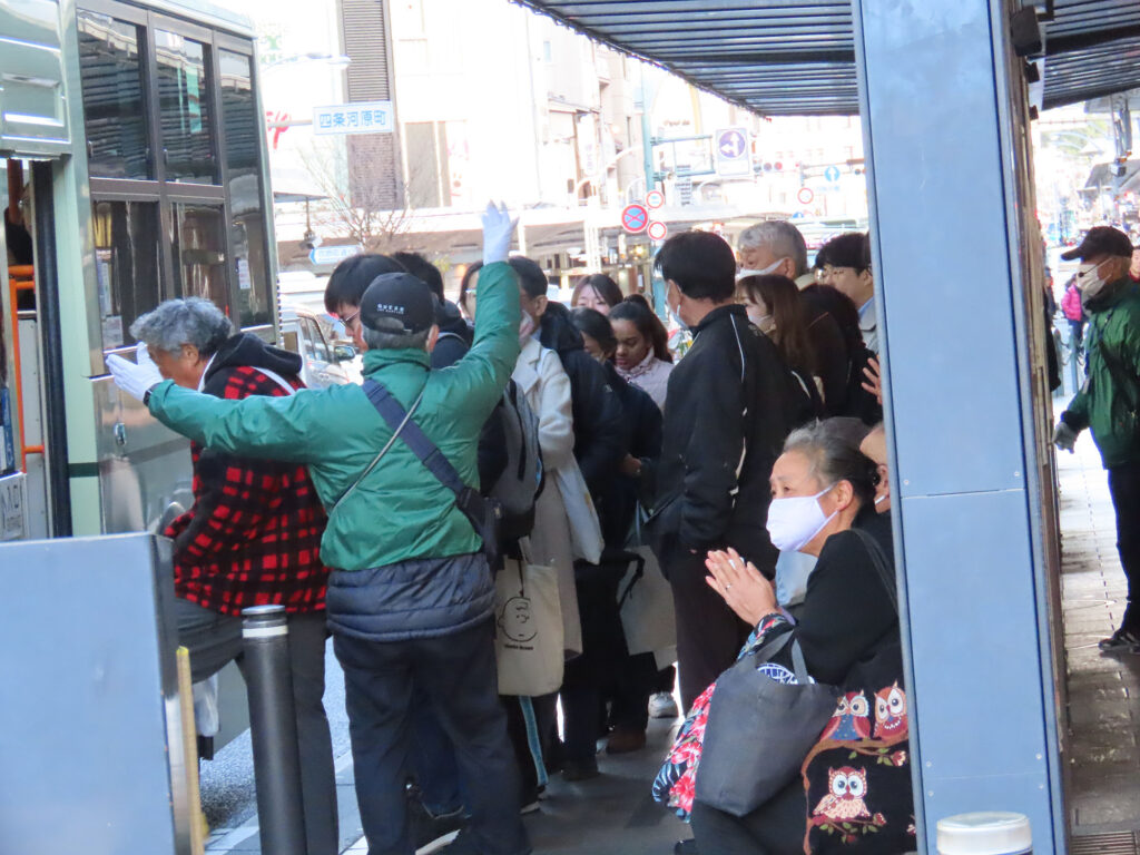 ふたつ目は、オーバーツーリズム問題だ。前述のように京都市営バスの旅客数が多いのは、インバウンドなどの観光客によるところが大きい。旅客が増えるのは喜ばしいのだが、それによって市民が乗車できないとなると話が変わってくる。とはいえ、実際は京都駅・繁華街・観光地を結ぶ一部の路線に限られた話。料金の高い「観光特急」を新設するなど、対策も講じられ始めている。