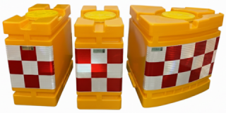 まず、この黄色いドラム缶のような物体の名前は「クッションドラム」だ。高速道路の分岐点や駐車禁止区域、事故多発地点に設置されているケースが多く、黄色に赤と白の市松模様の反射シートなどを貼った大きな樽形で、素材は樹脂製。その正体は衝突衝撃緩衝具のひとつだ。