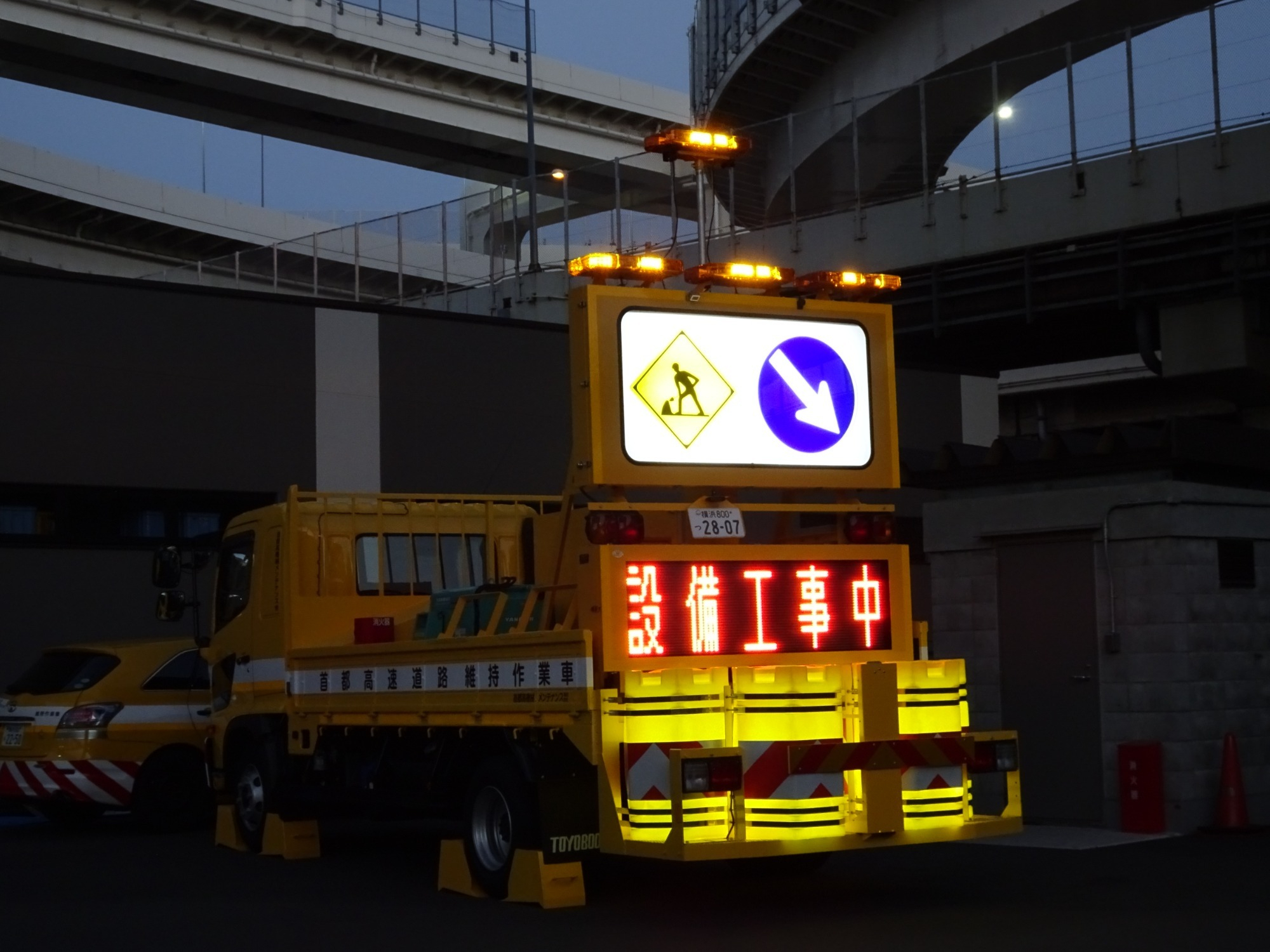 またスイッチひとつで点灯し、車両走行時は自動消灯するため、クッションドラムを搭載した工事車両ドライバーの操作負担はない。さらに既存車両への取る付けも可能であることから汎用性も高いといえる。追加機能としては標識装置の表示内容を妨げることのない照度に調整されている。