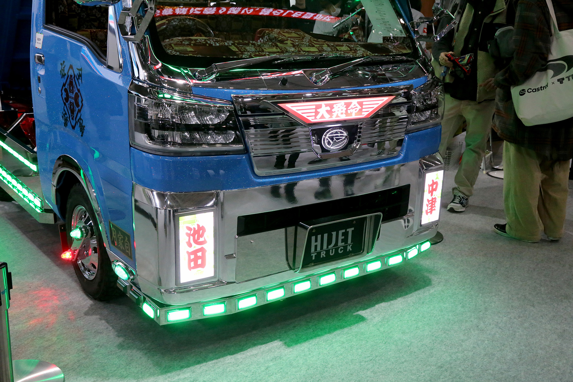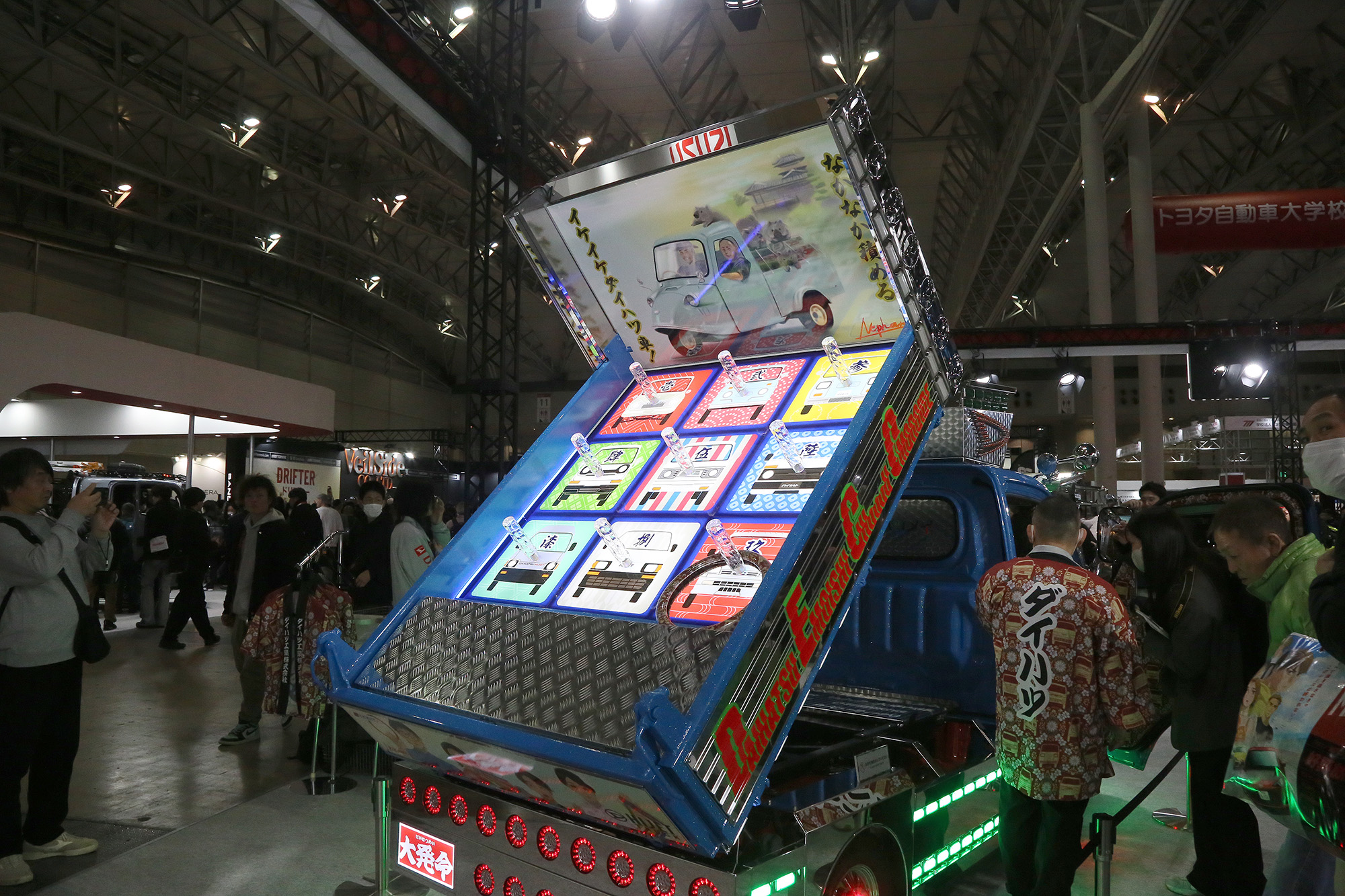 そんな自動車メーカー、それも業界トップのトヨタグループの一員であるダイハツがデコトラを製作するとは、何とも意外で、しかも遊び心あふれる試みではないだろうか。オートサロン初日には豊田章男会長も同社ブースを訪れ、先に述べた歴代ハイゼット&金華山風のハッピを身にまとい記念撮影をしていたとか。日本独自のクルマ文化として海外でも「DECO-TORA」として注目を集めているデコトラ。近年その車両も少なくなってきたともいわれてはいるが、その未来は明るいかもしれない。