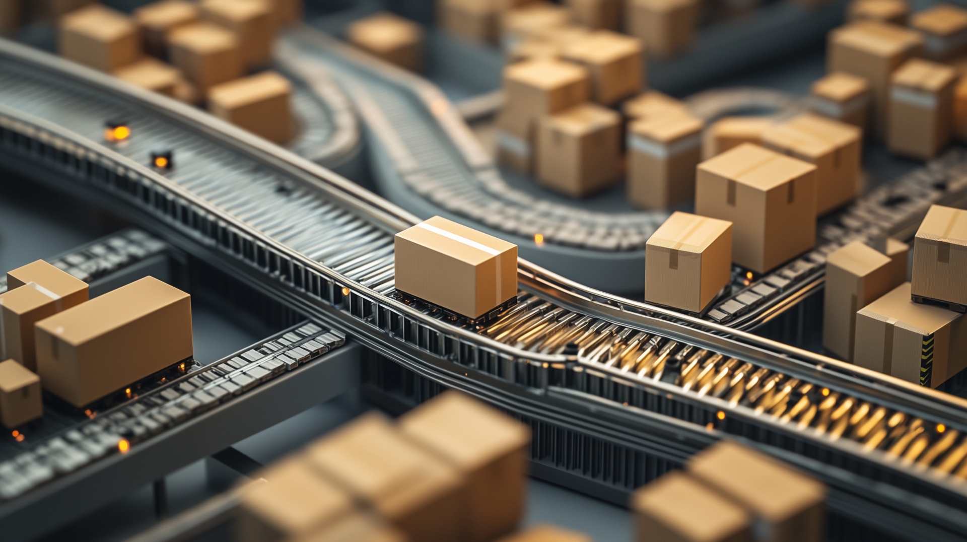 載せた荷物を一定方向へ流す機器の総称で、ベルト式、ローラー式、チェーン式など複数の種類がある。