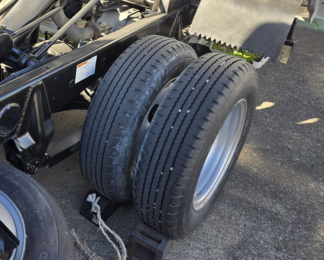 シャーシ、シャシ、シャシーなど呼び方はいろいろあるが、これはすべてトラックのパーツが装着される台のこと。いうなれば基本的骨組み部分だ。この骨組みにエンジン・ブレーキ・サスペンション・キャビン、荷台などが装着される。