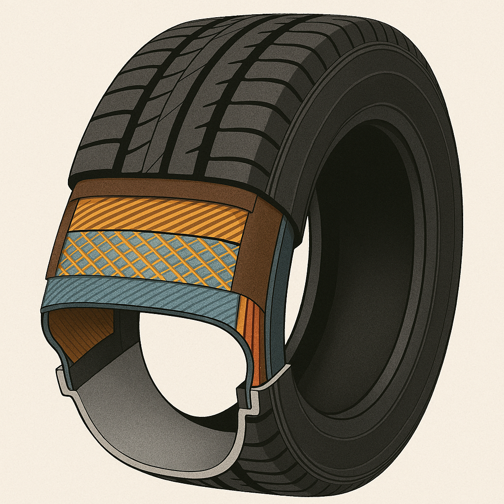ではなぜピンチカットが起こるのかを説明しよう。タイヤ内部には空気圧を一定に保ち、タイヤの形状を維持する「カーカスコード」と呼ばれるパーツがある。これは何らかの原因で破損し、タイヤの側面の形状が保てなくなった結果、カーカスコードが破損した場所がこぶ状のふくらみとなるのだ。