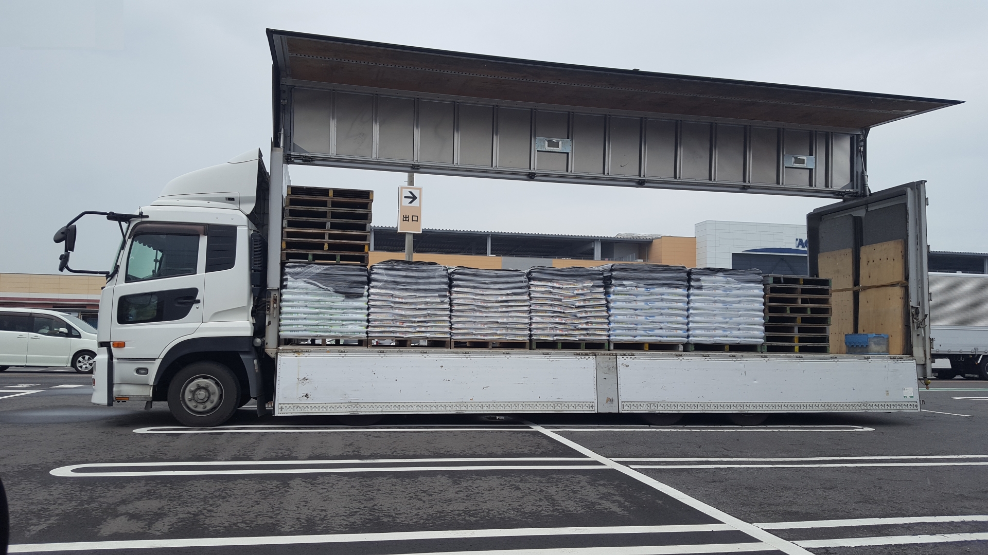 ウイングの開く方向や角度を微調整することができるため、狭いスペースでの積み降ろしに向いている。